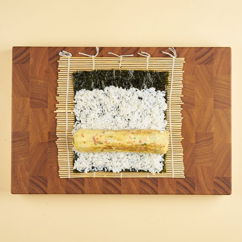 김 위에, 밥 위에 계란말이 얹어 말아주면 완성!