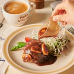 달걀은 취향에 따라 계란후라이로 익히고 함박스테이크 위에 올려주고, 믹스 샐러드나 방울토마토 등을 함께 곁들여도 좋아요.