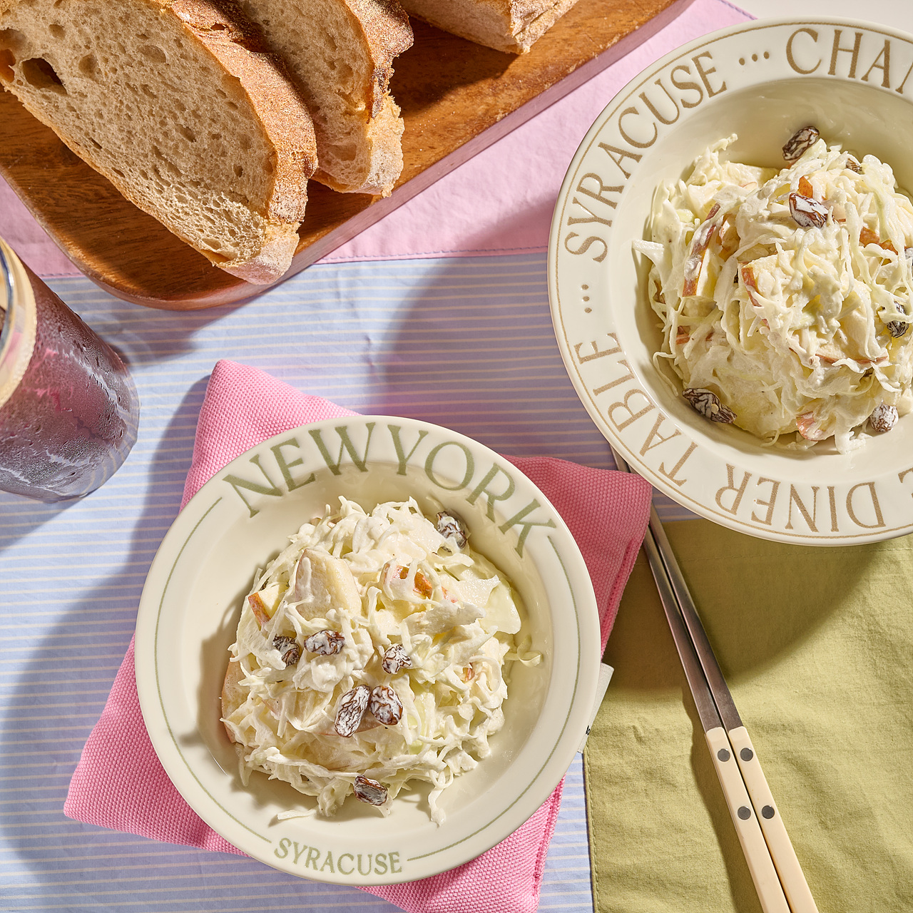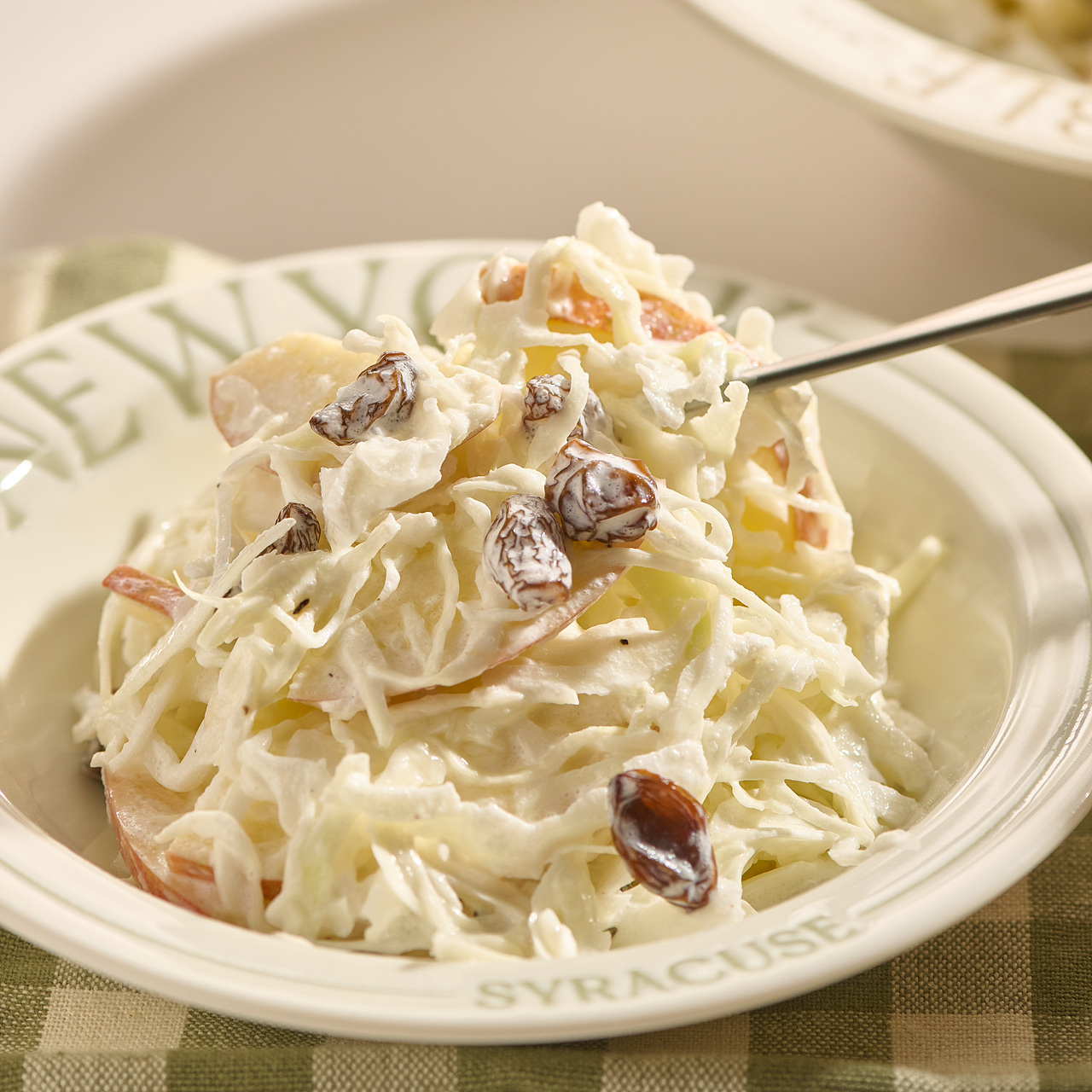 - 양배추샐러드에 아삭하고 새콤한 사과와 씹히는 건포도를 넣어주면 더 다채로운 맛과 식감을 낼 수 있어요.