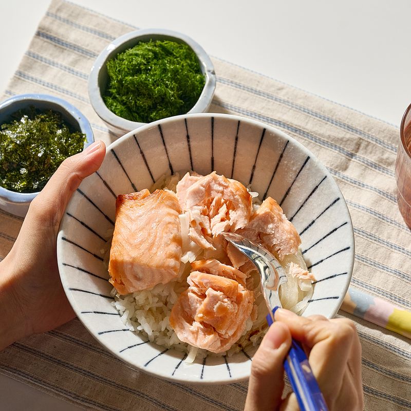 건강 찜 연어덮밥