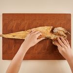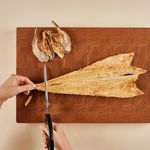 불린 황태는 내장 쪽에 있는 큰가시를 제거해 주고 껍질 쪽에 대각선으로 칼집을 1~2회 넣어주세요.