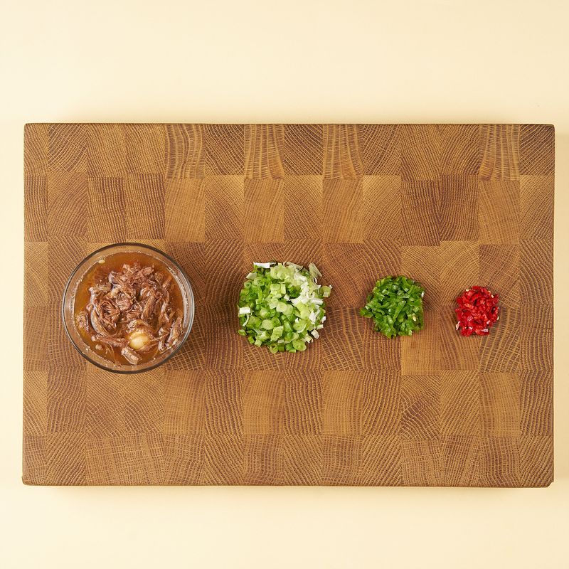 장조림 잘게 찢어 부침가루와 섞으면