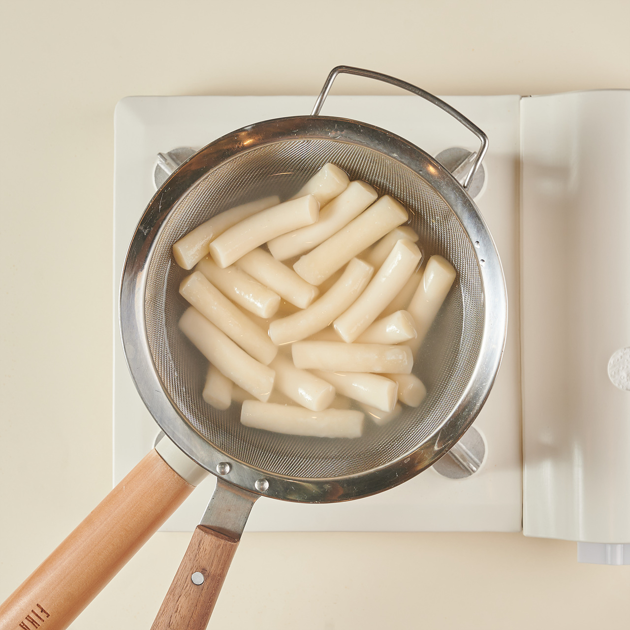 대파는 반으로 길게 갈라서 5cm 길이로 잘라 주세요. 떡은 뜨거운 물에 살짝 데쳐서 한 번 씻어주세요.