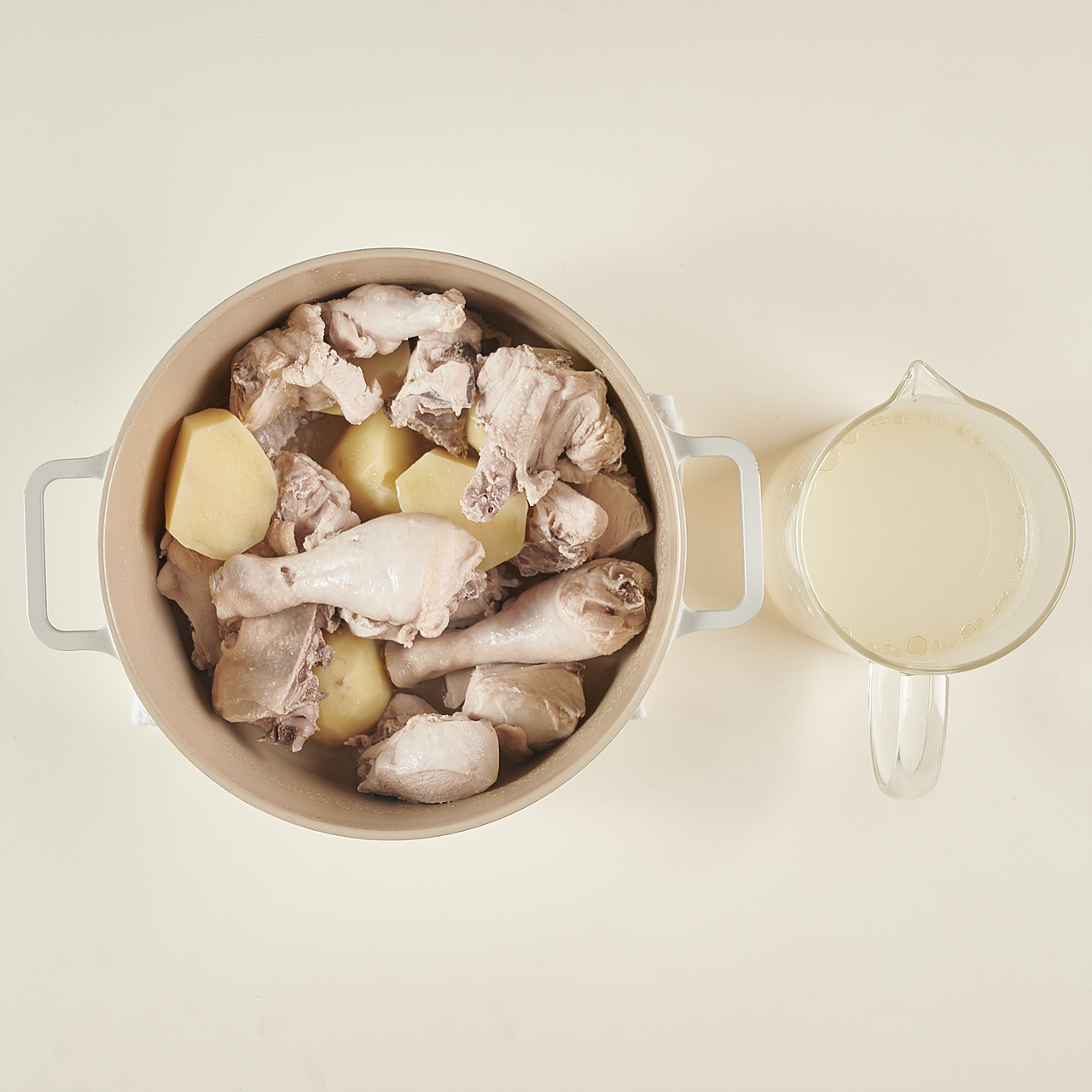재료에서 우러나온 맛을 닭볶음탕 육수로 활용해 깊고 진한 맛을 낼 수 있답니다. 떠오르는 불순물은 숟가락 등으로 제거하고 사용해 주세요.