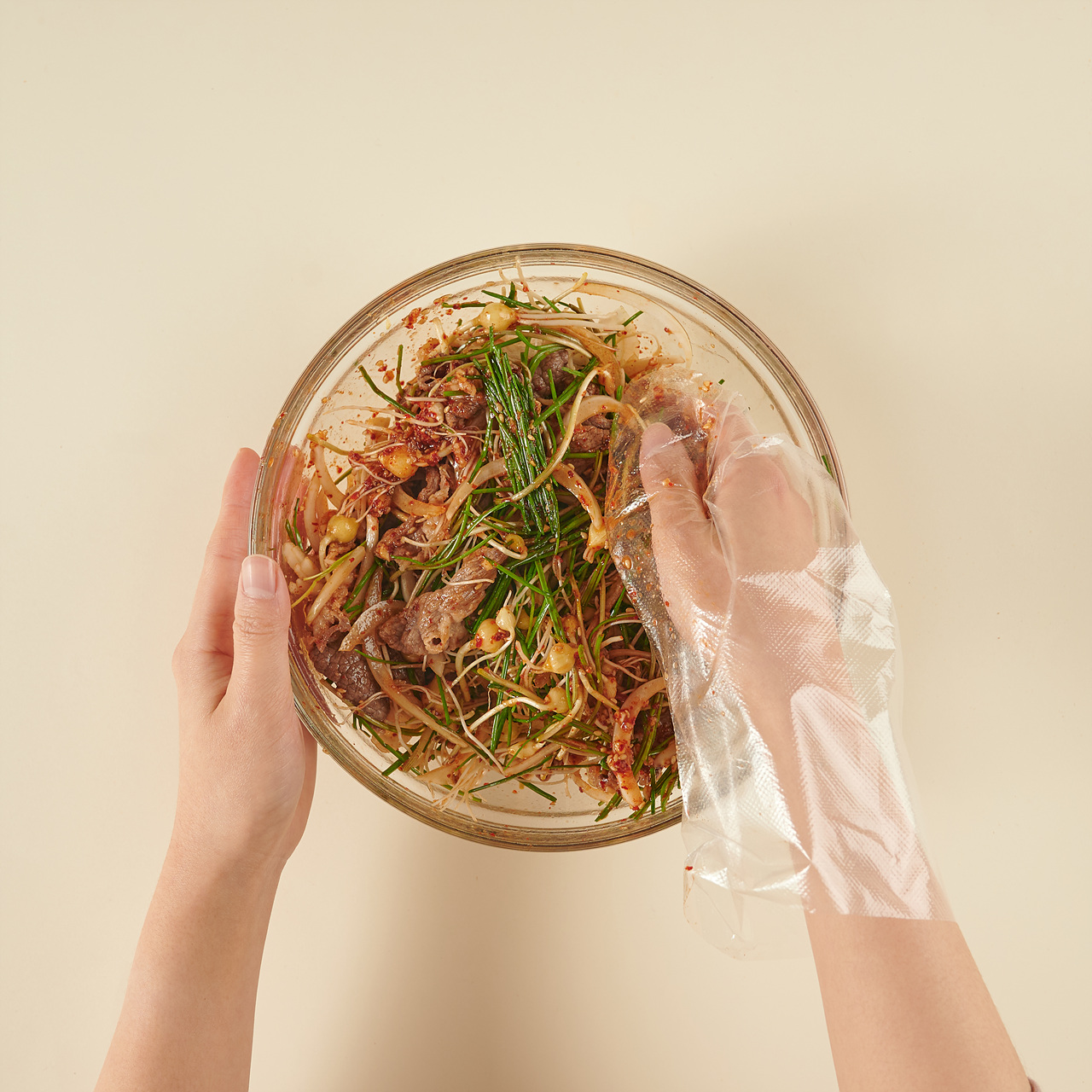 달래, 양파, 차돌박이를 양념과 함께 골고루 버무리면 완성!