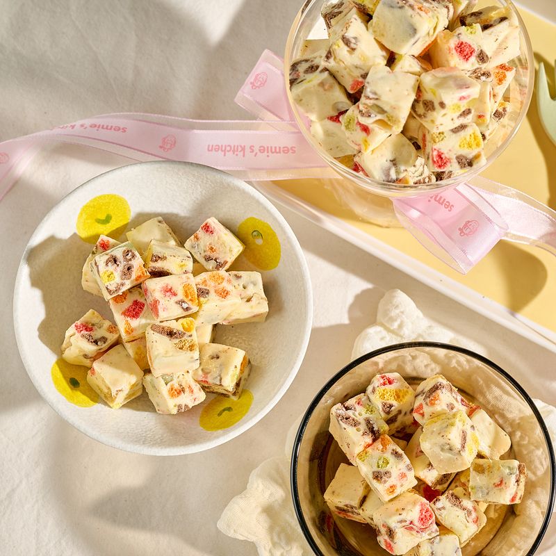 잘게 부순 토핑재료(과자와 젤리)를 모두 넣고 골고루 빠르게 섞어주세요.
