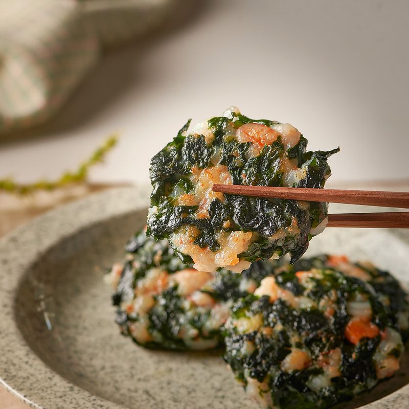 미역과 새우를 잘게 다져 뭉치기만 하면 완성!
