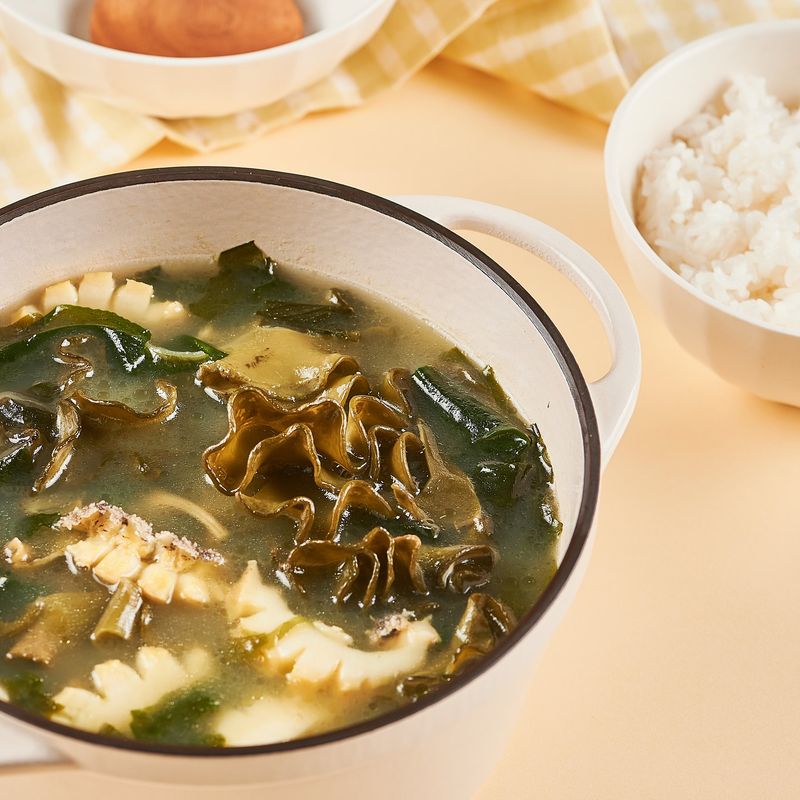 진득한 국물과 오독오독 신기한 식감이 매력적인미역귀 미역국원하는 부재료를 더해주면 보양건강식 완성!