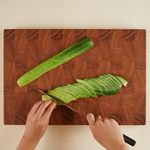 오이는 깨끗하게 씻은 후, 양쪽 꼭지를 제거하고 세로로 반 잘라 1cm 두께로 어슷 썰어 주세요.