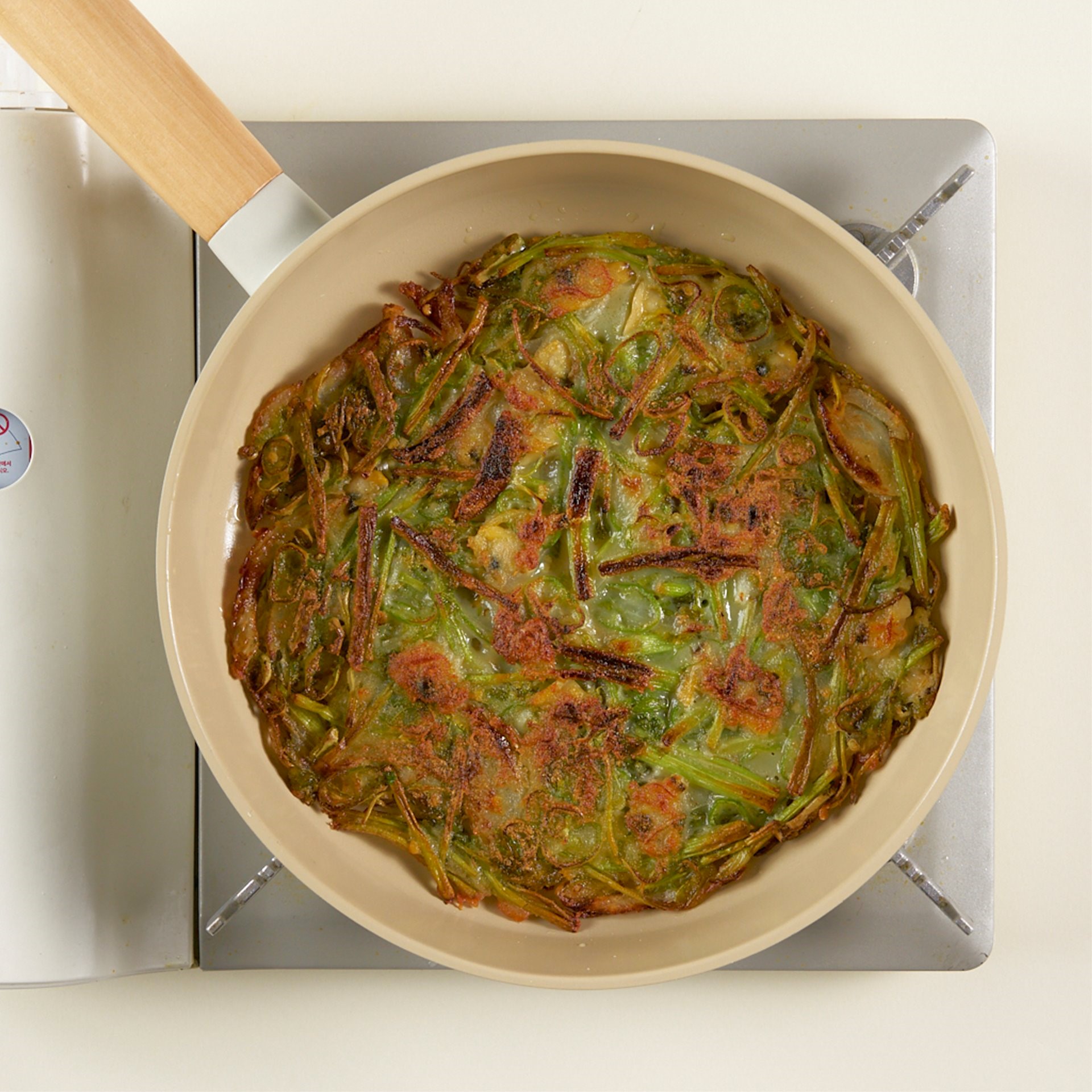 1. 충분히 기름을 둘러 팬을 예열해 코팅한 후에 반죽을 넣어주세요! 예열과 함께 기름 코팅을 하지 않을 경우, 반죽이 기름을 많이 흡수해 느끼할 수 있어요! ​