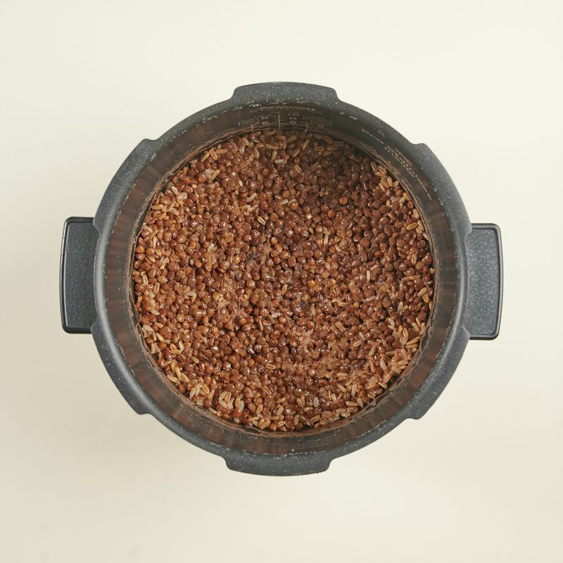 쌀과 잡곡, 콩(백미, 현미, 귀리, 렌틸콩)을 계량해 깨끗하게 씻어 주세요.