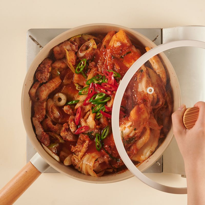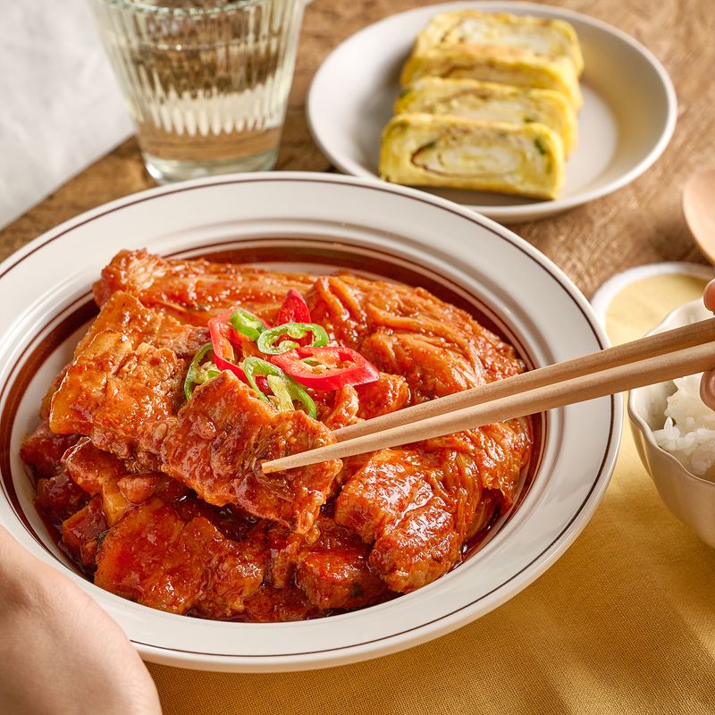 구이용 삼겹살로 어렵지 않게 만드는 돼지고기 김치찜.