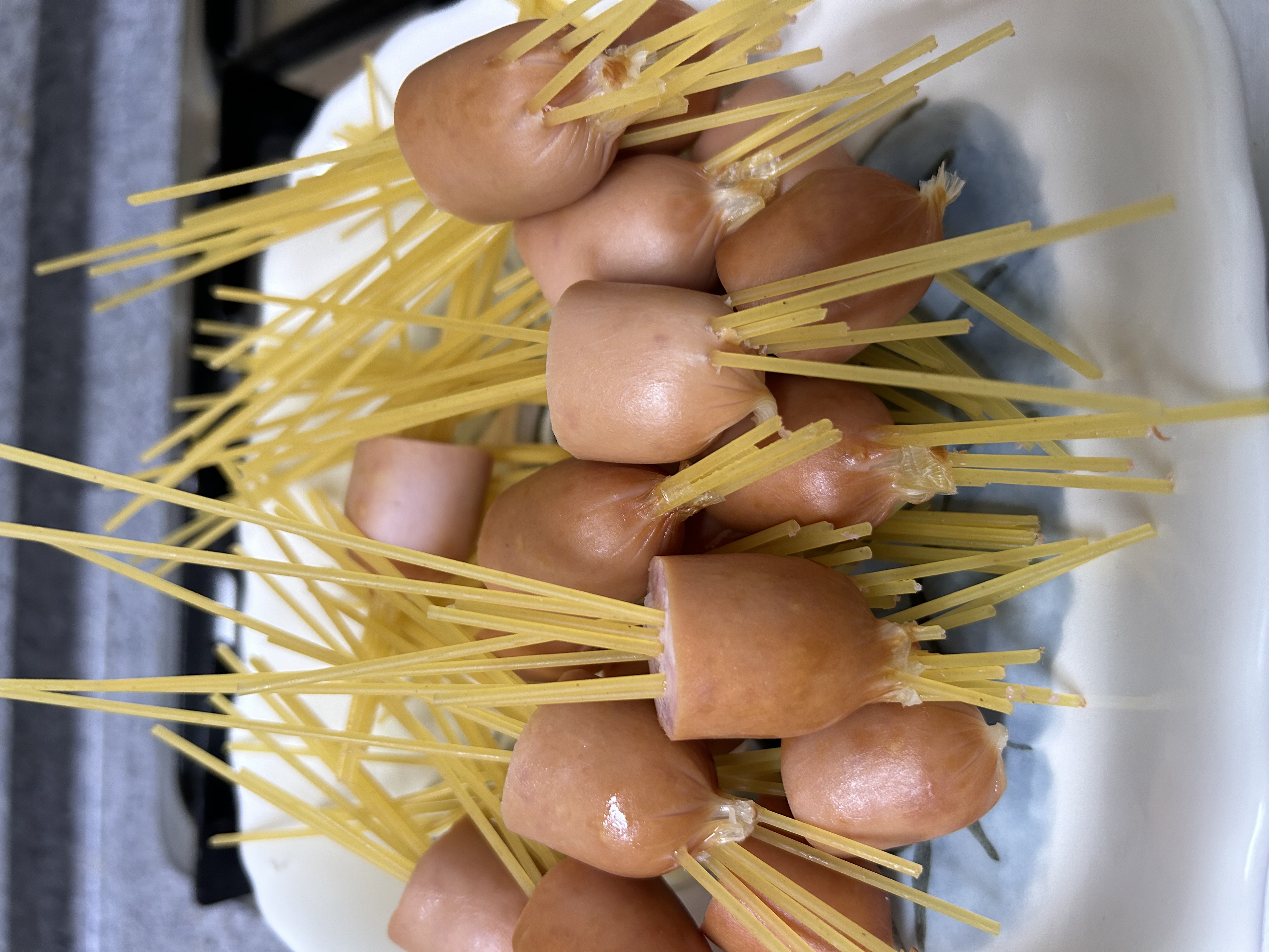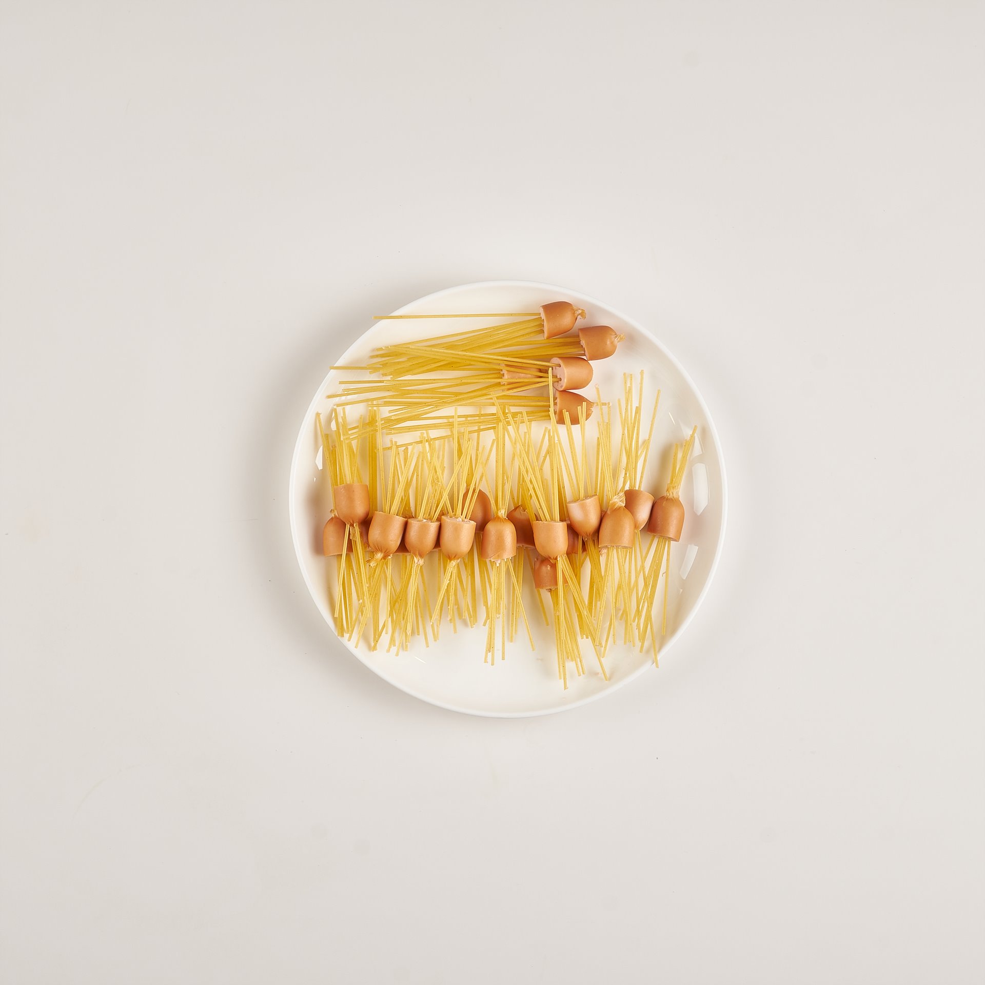 Step 1. 소시지에 파스타 꽂기