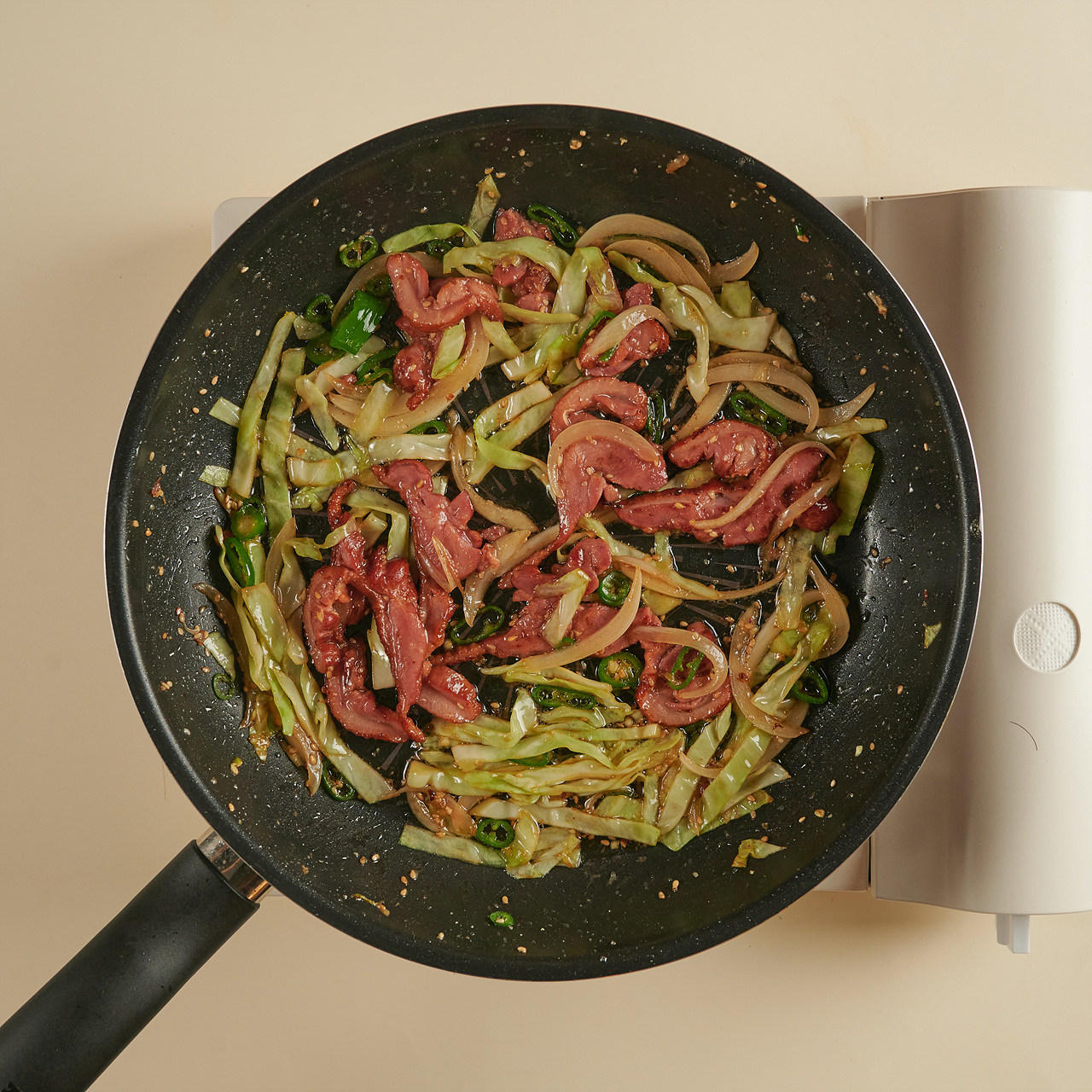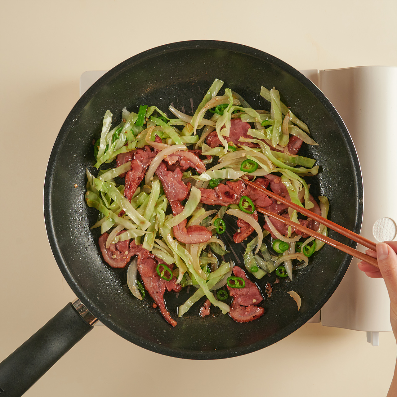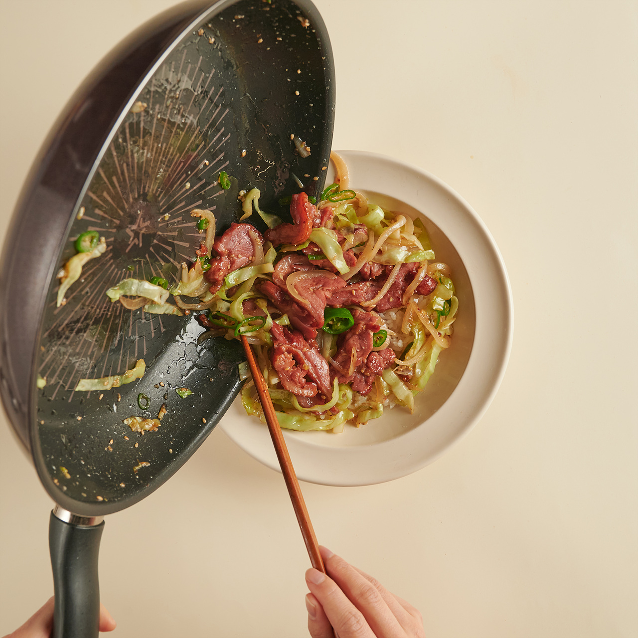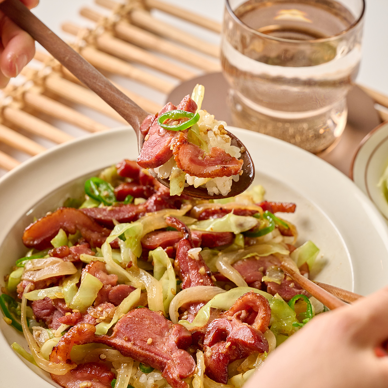 좋아하는 채소와 훈제오리 볶아 밥 위에 톡!