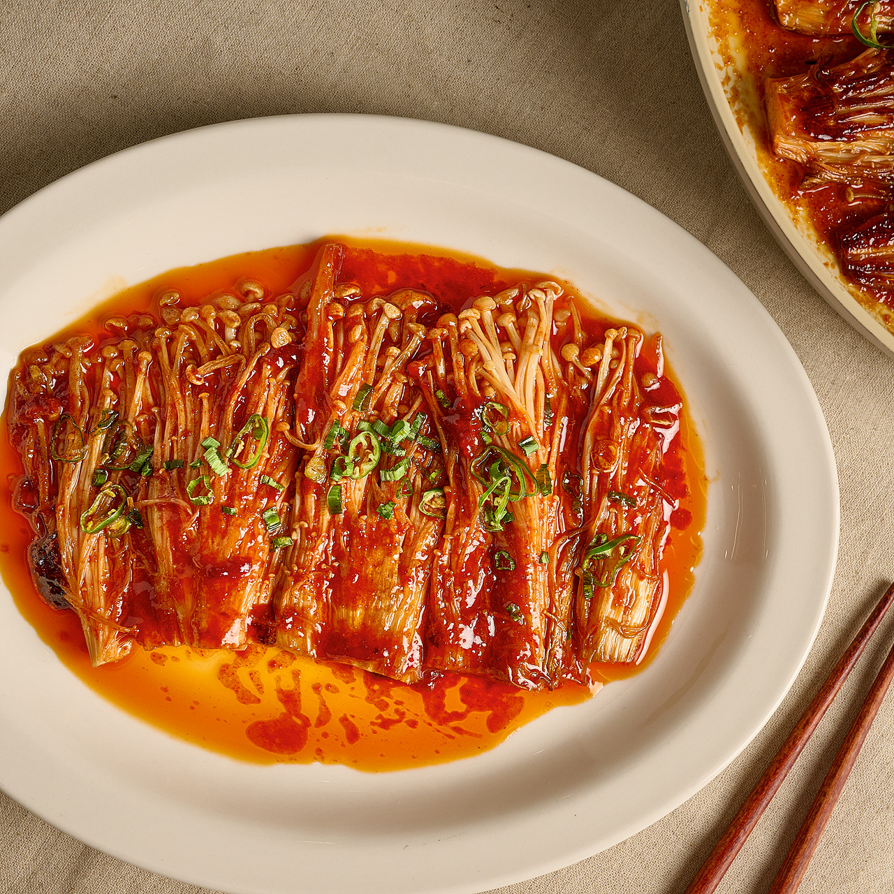 매콤꾸덕 소스와 쫄깃한 팽이의 만남