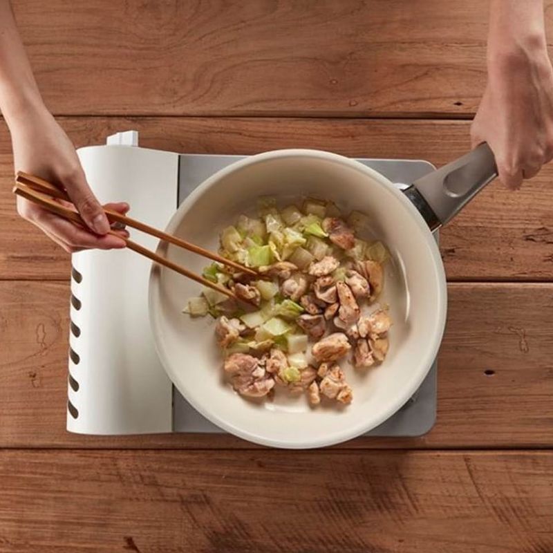 예열한 팬에 식용유를 두른 후, 닭다리살, 양파, 양배추를 넣고 5분간 고루 잘 볶아주세요.