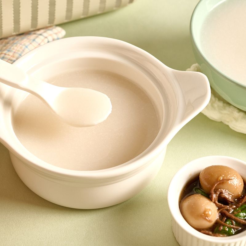 ①쌀(100g)은 물 1컵(200ml)을 넣어 약 10분 가량 불려 주세요. ②예열된 냄비에 식용유(1스푼)를 두른 후, 불린 쌀을 약불에서 약 2~3분간 볶아 주세요. ③볶은 쌀 위로 티백을 30분 정도 우린 물(1L)을 넣고 약불에서 쌀알이 뭉글어 질 때까지 약 6~7분간 끓여 주세요. ④미음을 믹서에 곱게 갈아주면 완성!