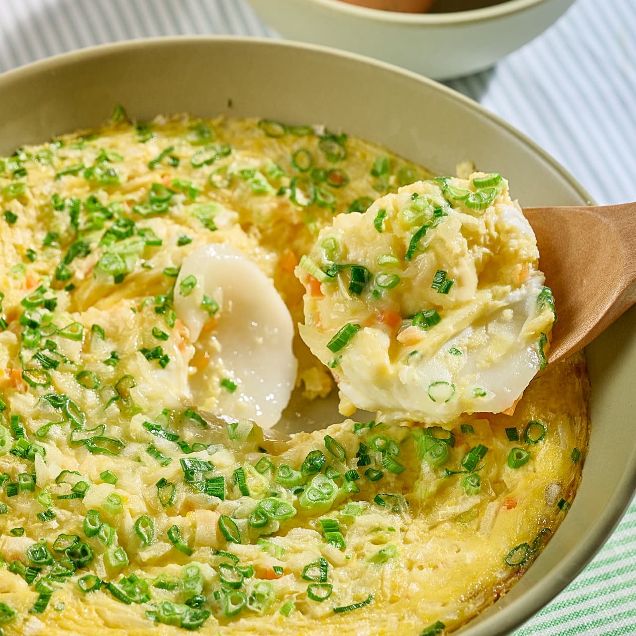 그릇에 달걀, 준비한 채소, 물, 연두순을 모두 넣고 골고루 섞어 주세요.