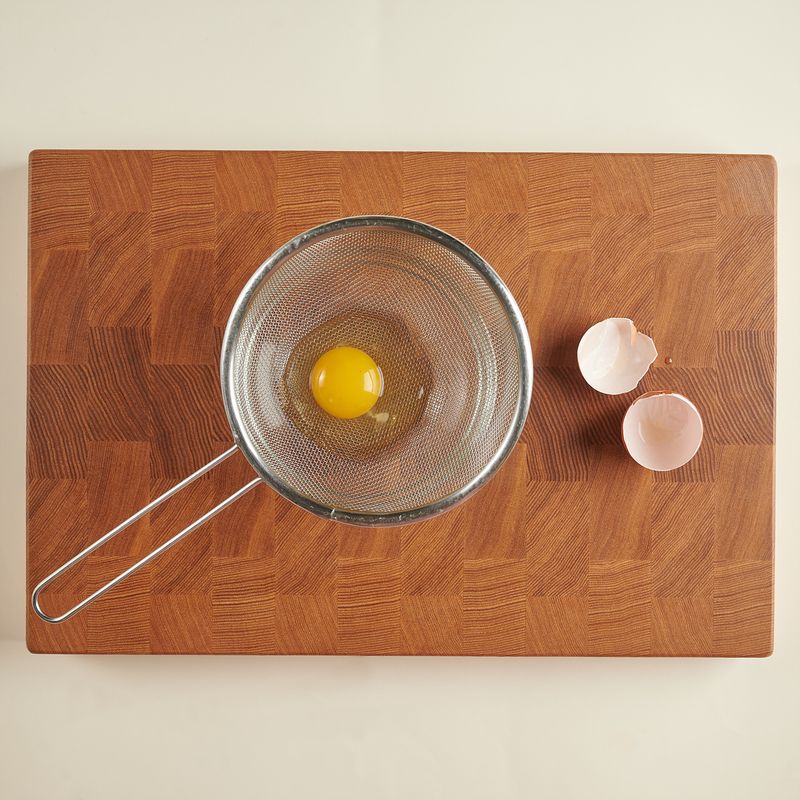 물을 끓이는 동안 달걀은 체에 밭쳐 힘없는 흰자를 걸러 주고, 볼에 담아 준비해 주세요.