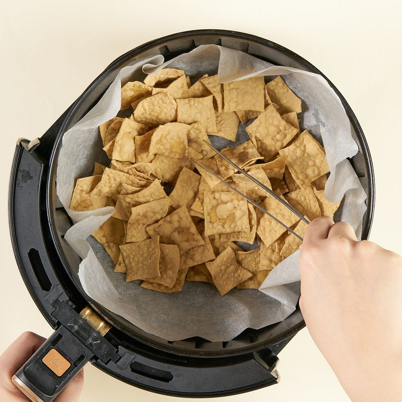 180℃로 예열한 에어프라이어에 포두부를 펼쳐 넣어 10분간 구운 뒤, 뒤집어 5분간 더 구워주세요.