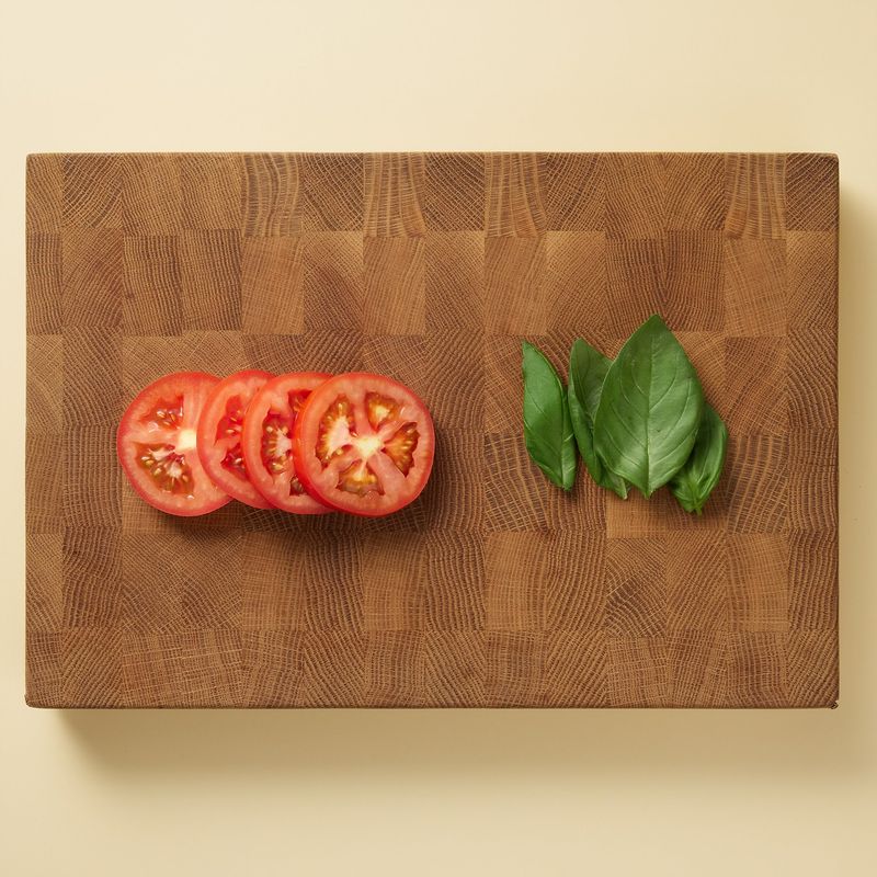 토마토는 1cm 두께로 원형썰기하고, 바질은 물로 세척 후, 한 잎씩 떼어내 주세요.