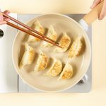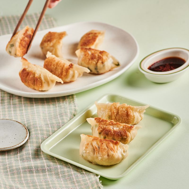 예열한 팬에 식용유 2스푼을 두르고 만두를 앞뒤로 노릇하게 구워주면 완성!