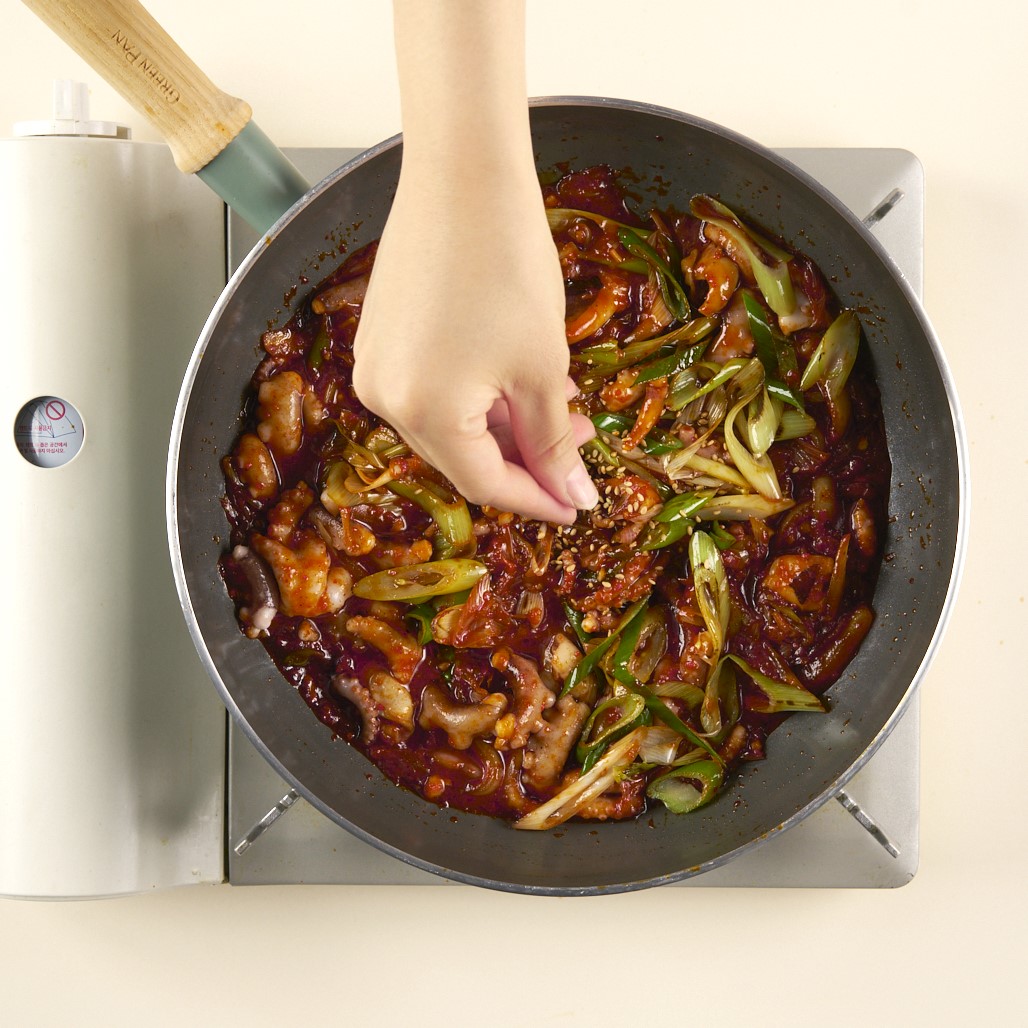 빨간 양념에 한 번 더 볶아주면 완성!