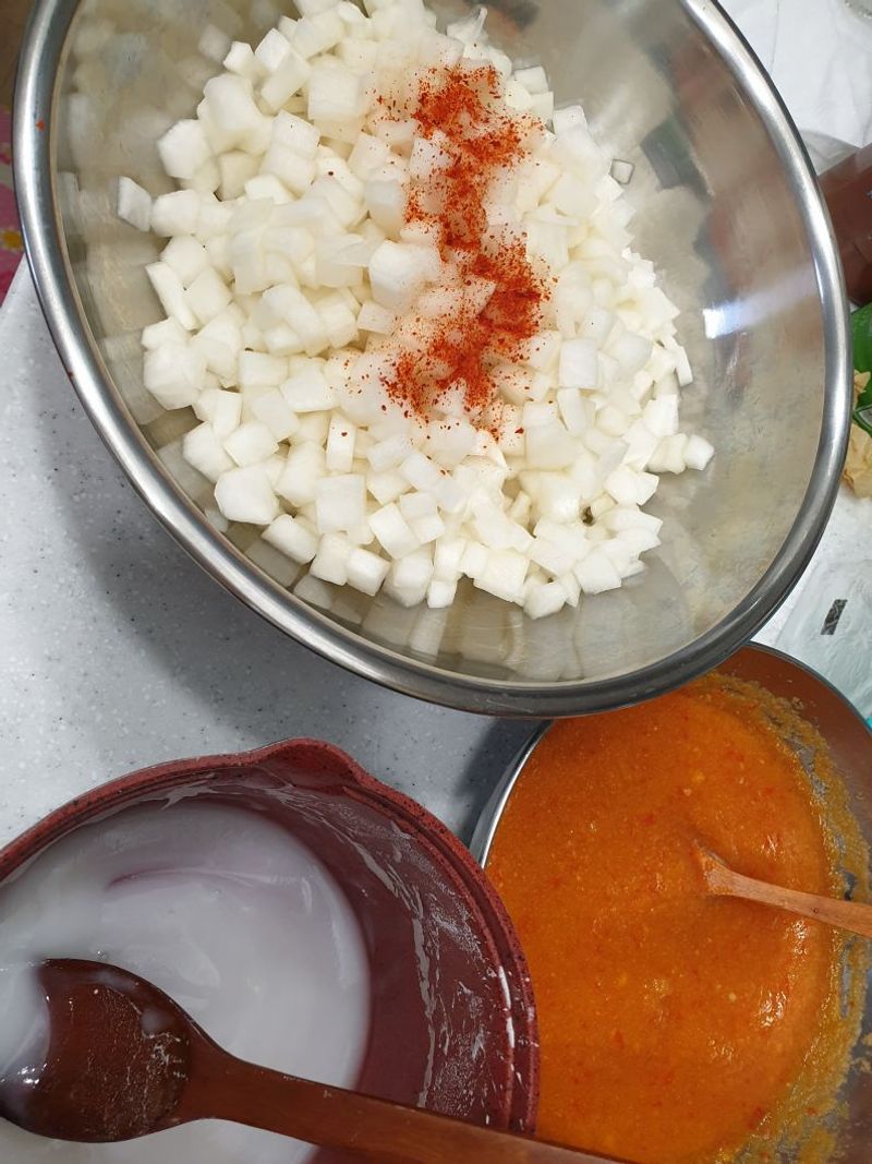 3. 썬 무를 설탕 소금에 절이기