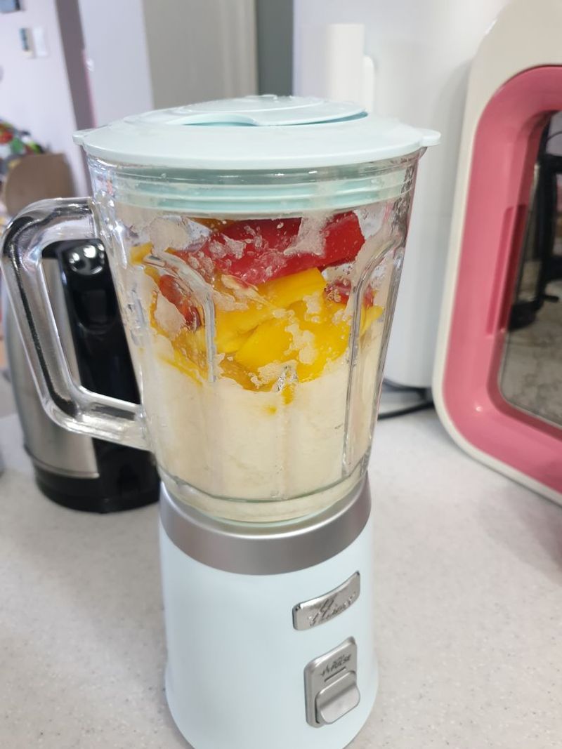 4. 절여진 무에 믹서기에 간 재료와 고춧가루아주조금 매실청 찹쌀풀 넣고 버무르기 끝~♡