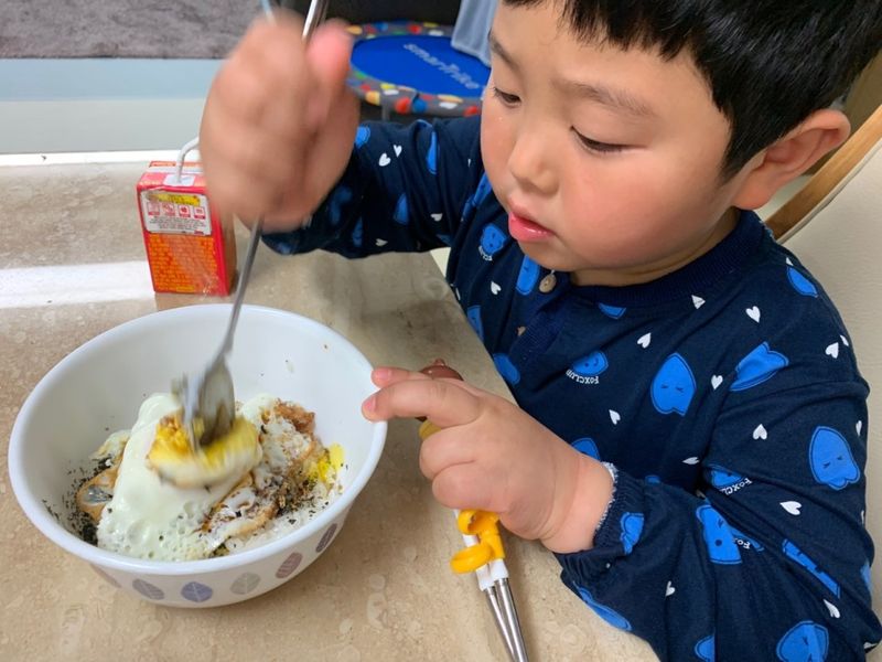 6살 아들의 셀프 계란깨기!