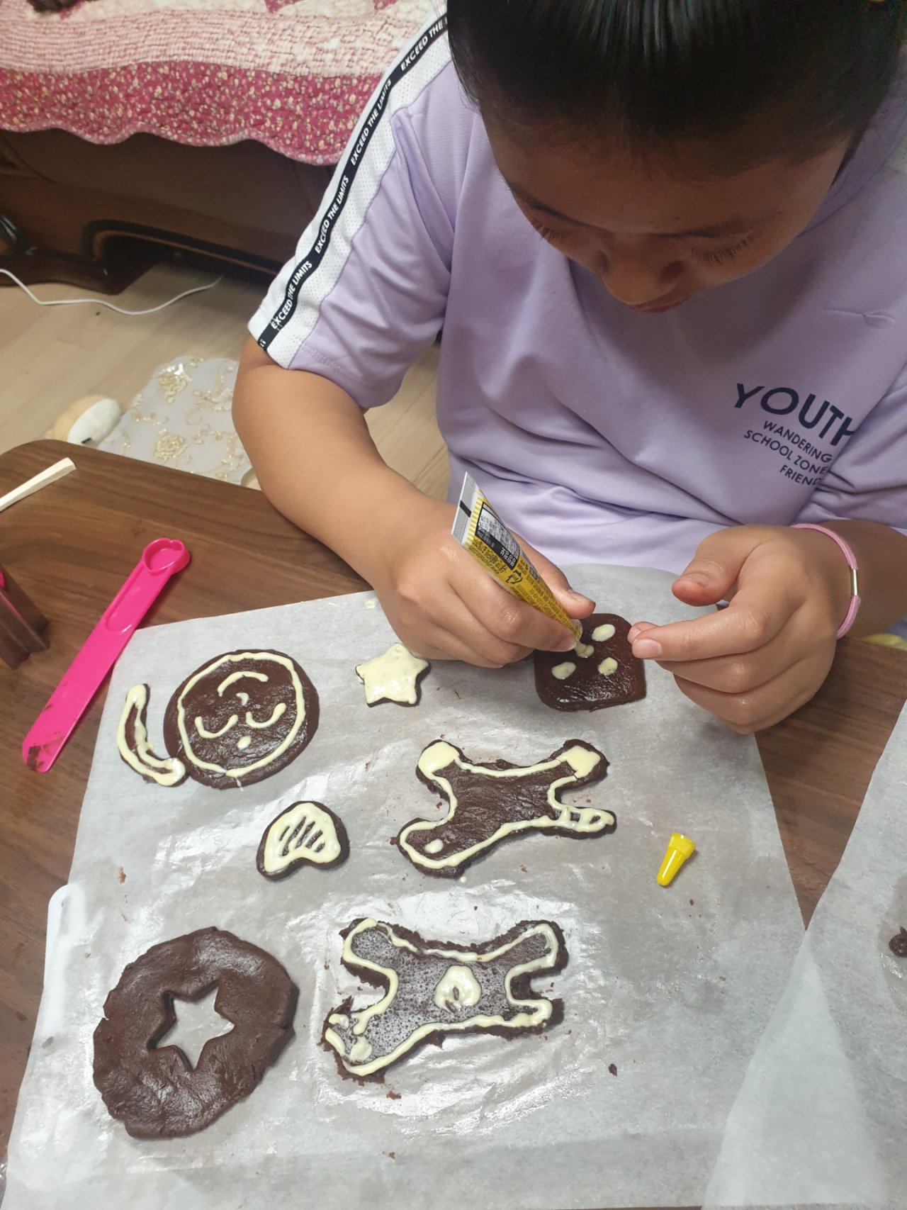 내가할래..나도할래 하며 손수 두 시간을 열심히 반죽부터 조물조물 꼬물꼬물.각자 맘에드는 모양으로 만들어