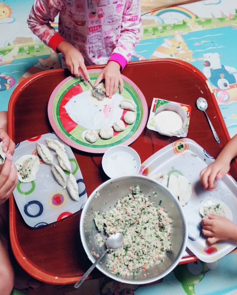 누가누가 제일이쁜만두를 빚나 크기도다양하게 모양도 다양하게 자기가만든 만두찾아서 먹기까지 ^^