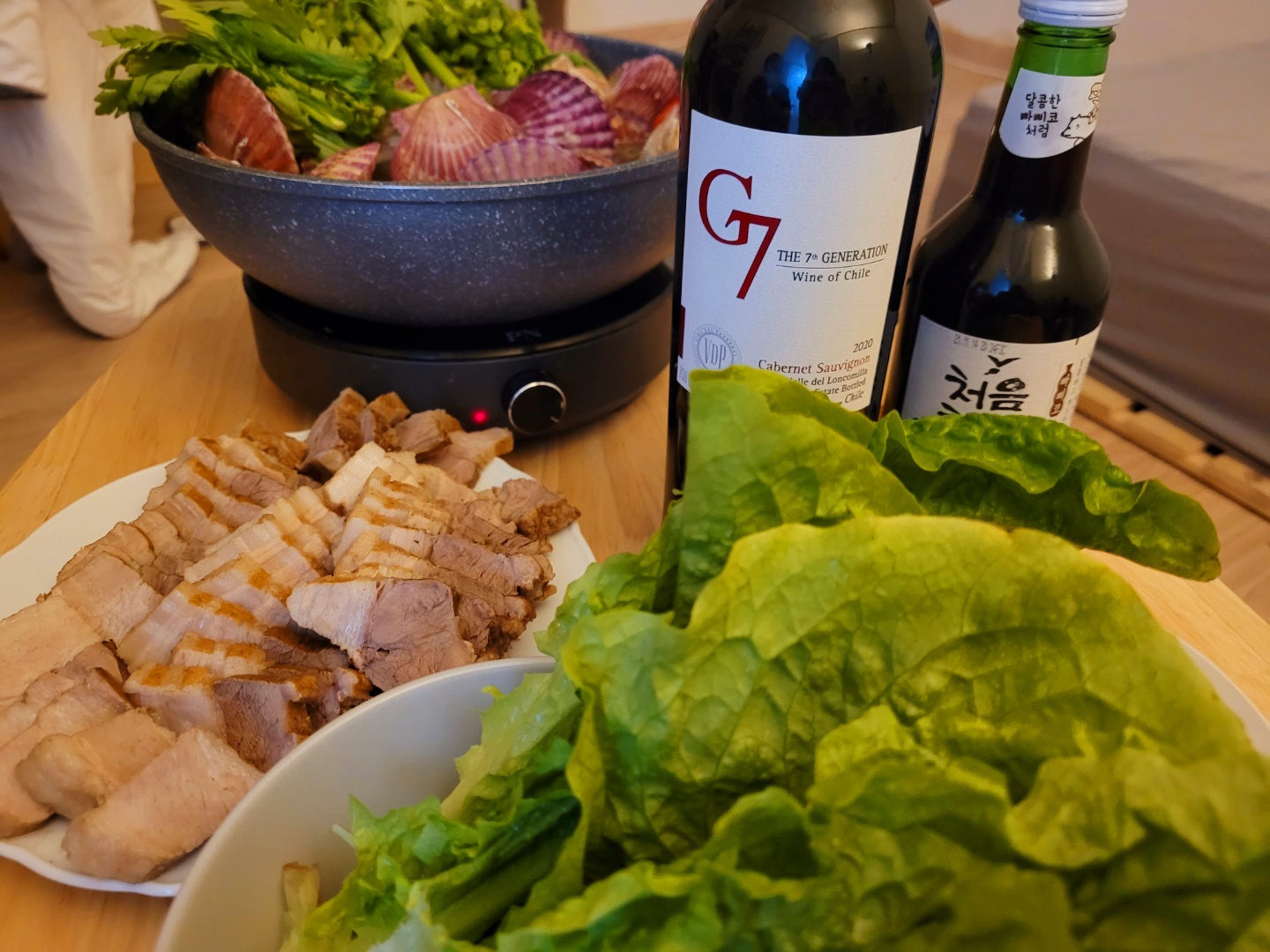 콜라를 넣은 수육과 가리비 조개탕은 술을 부릅니다 ㅎㅎ