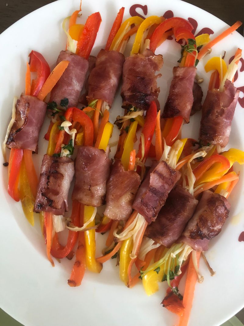 어떤 분이 아이들과 베이컨으로 야채 말이 한 사진 올리셨길래