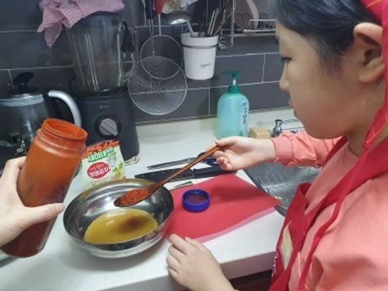 아이 외가집에서 직접 농사지어 만든 고춧가루를 6스푼정도 넣어줍니다.
