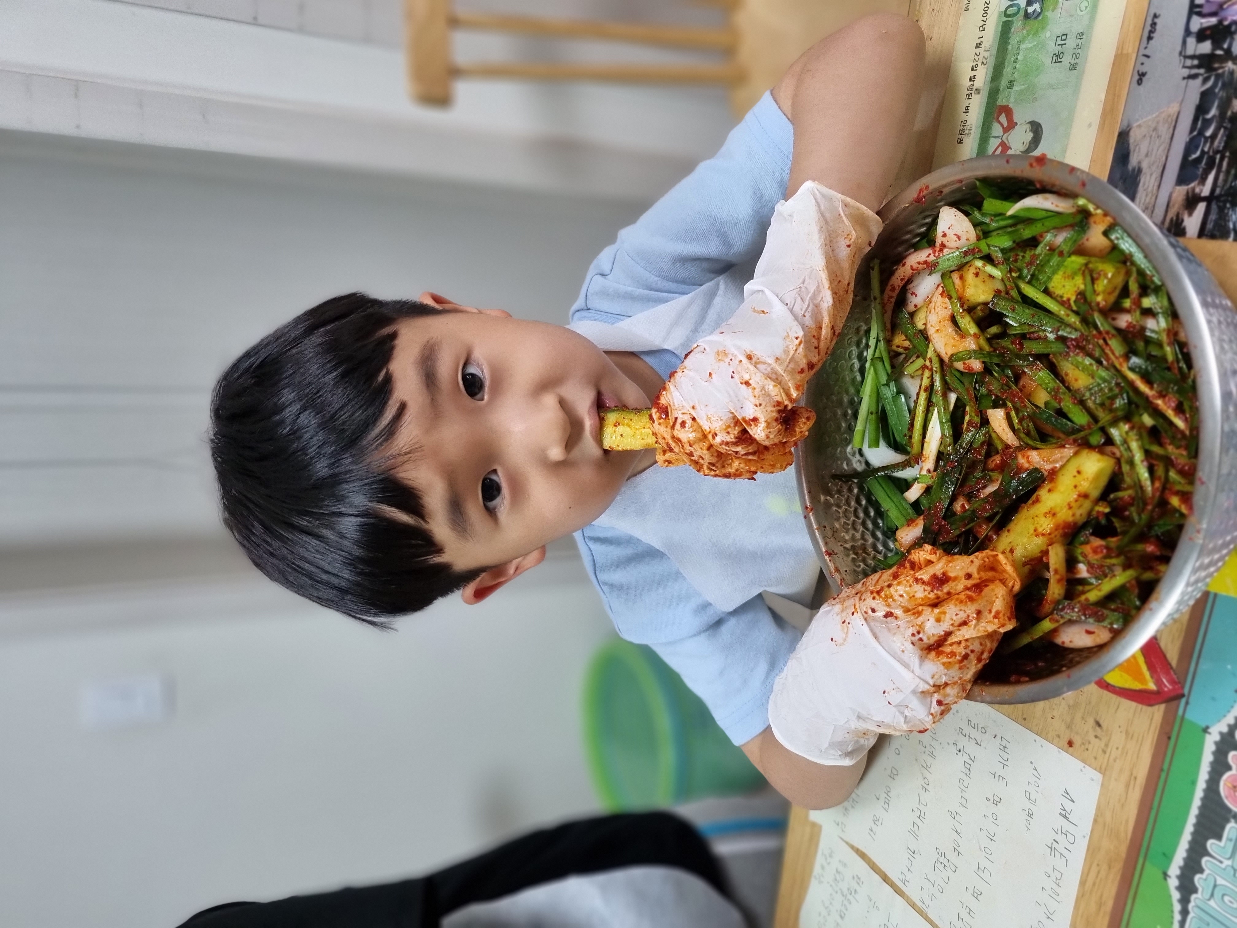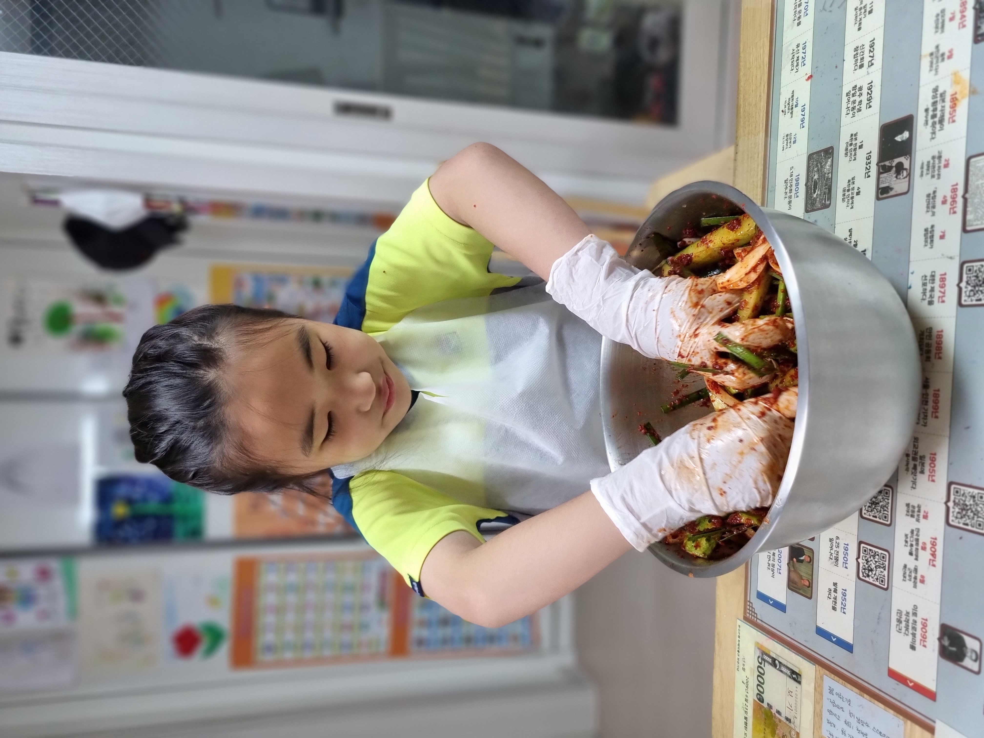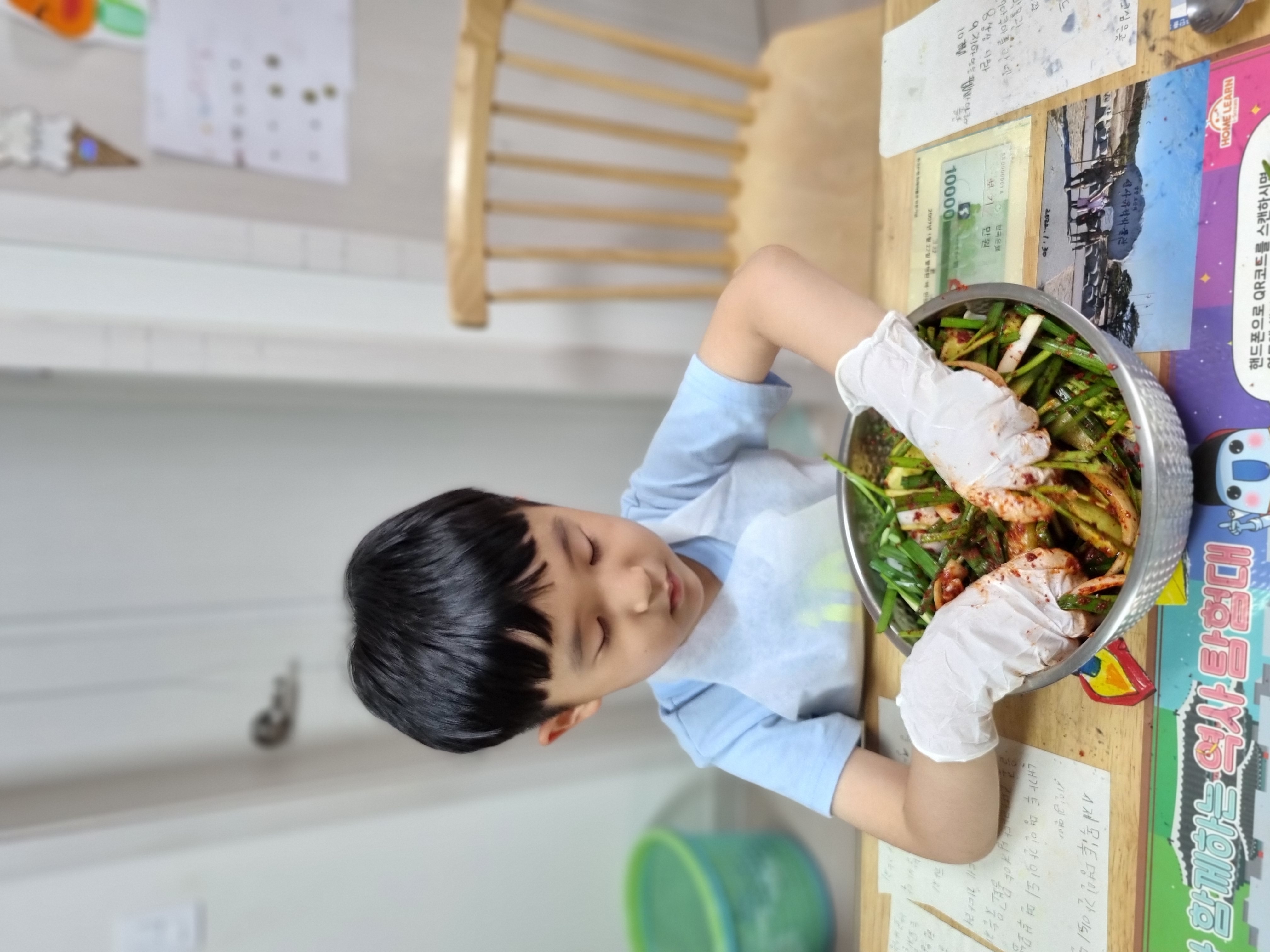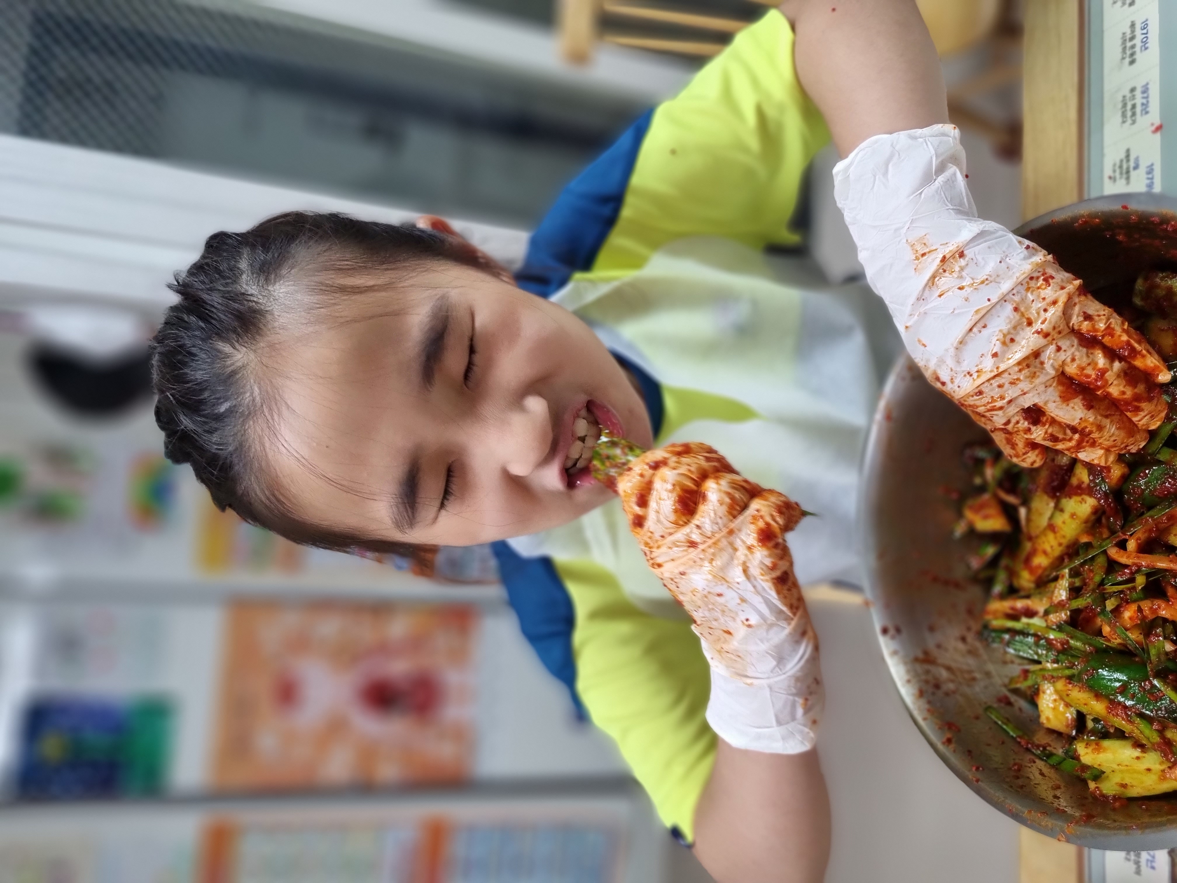 아이는 즐겁게 오이김치를 만들어 보았어요♡