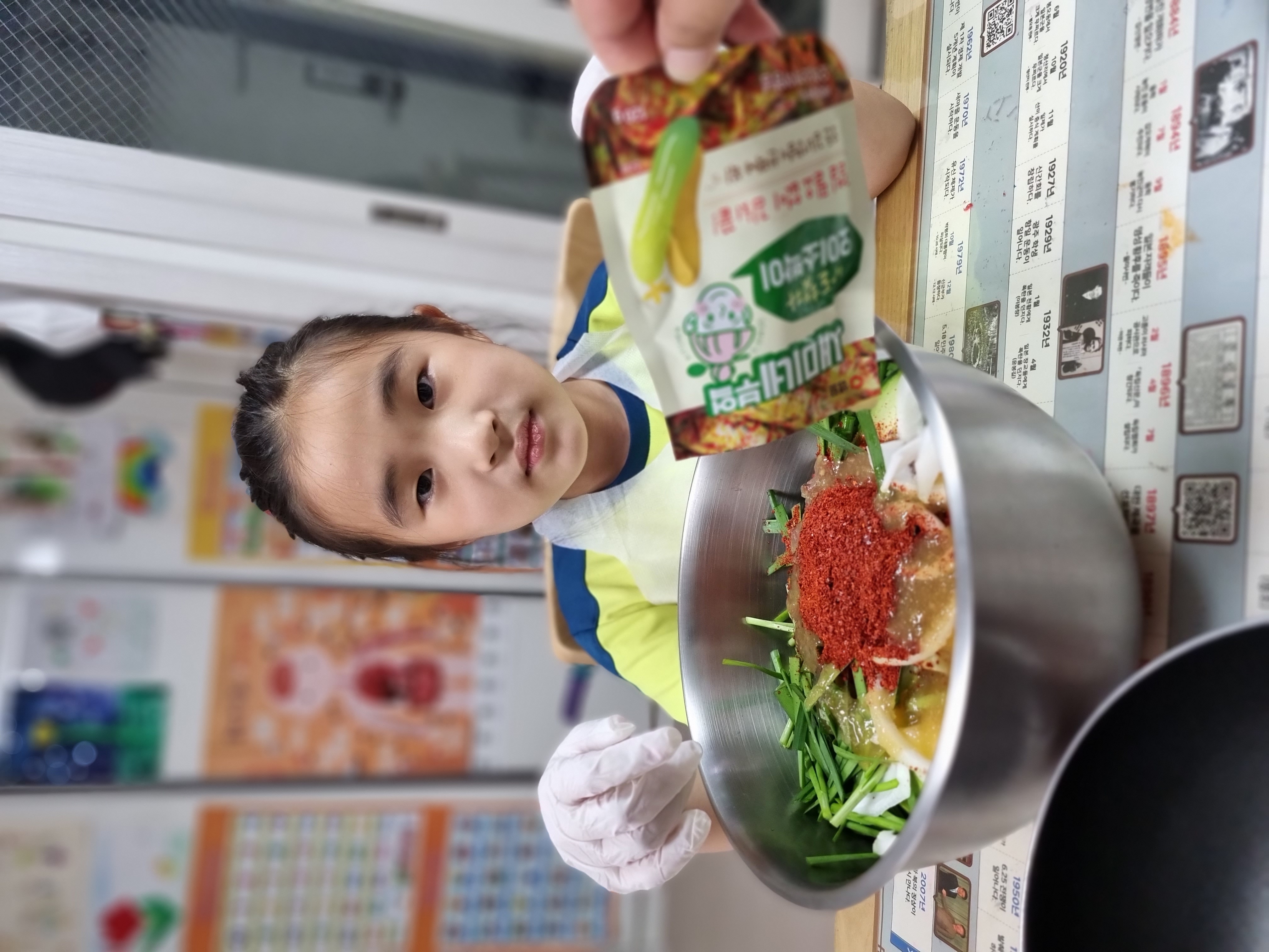 오이 썰고 부추 넣고 고추가루와 마지막 샘표 오이소박이양념까지 야무지게 넣고 쓱쓱 비벼비벼~^^ 아이들 신나는 모습에 엄마인 저도 즐거웠어요!!