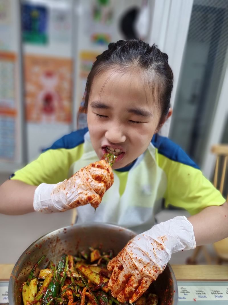 아이는 즐겁게 오이김치를 만들어 보았어요♡