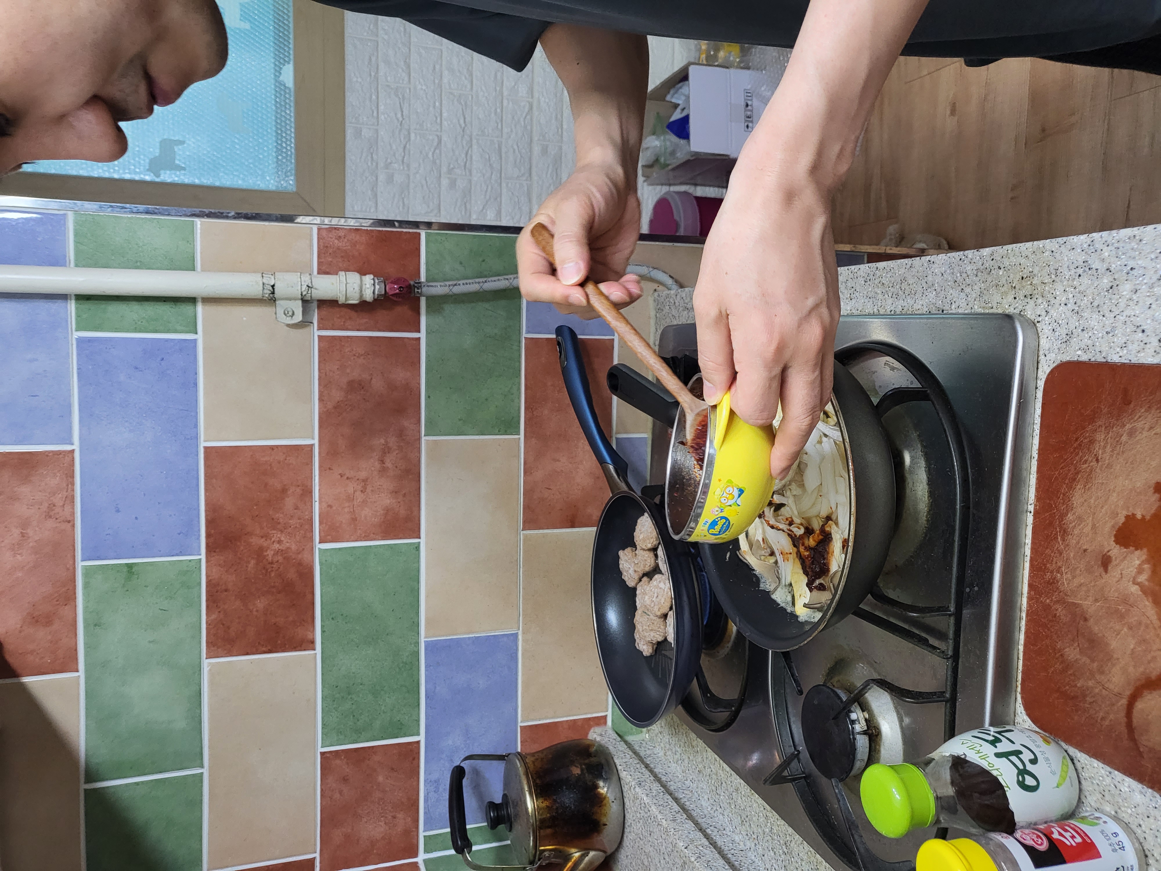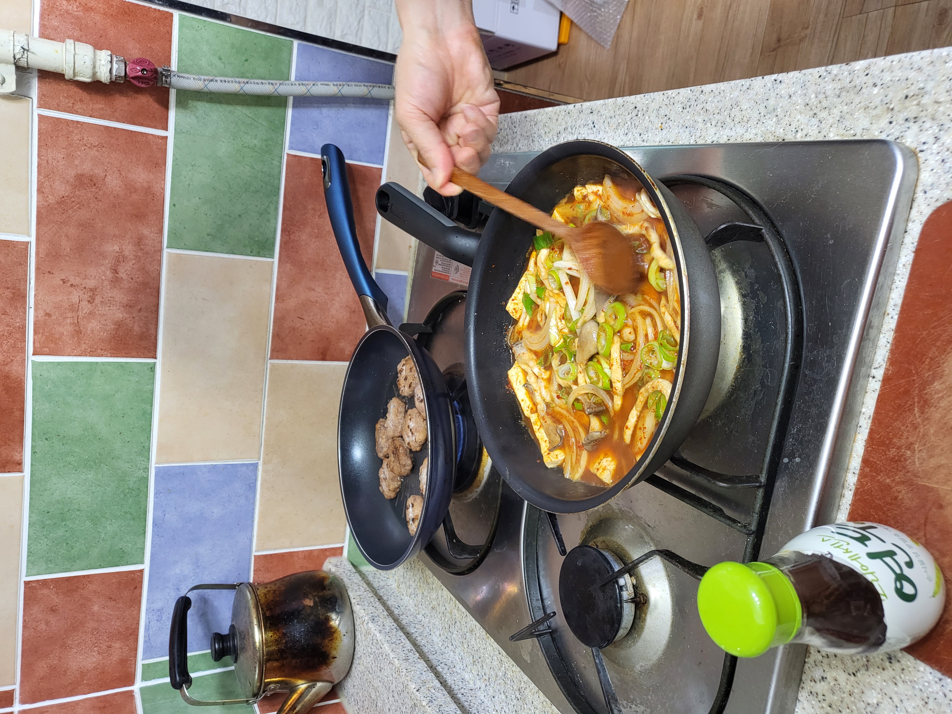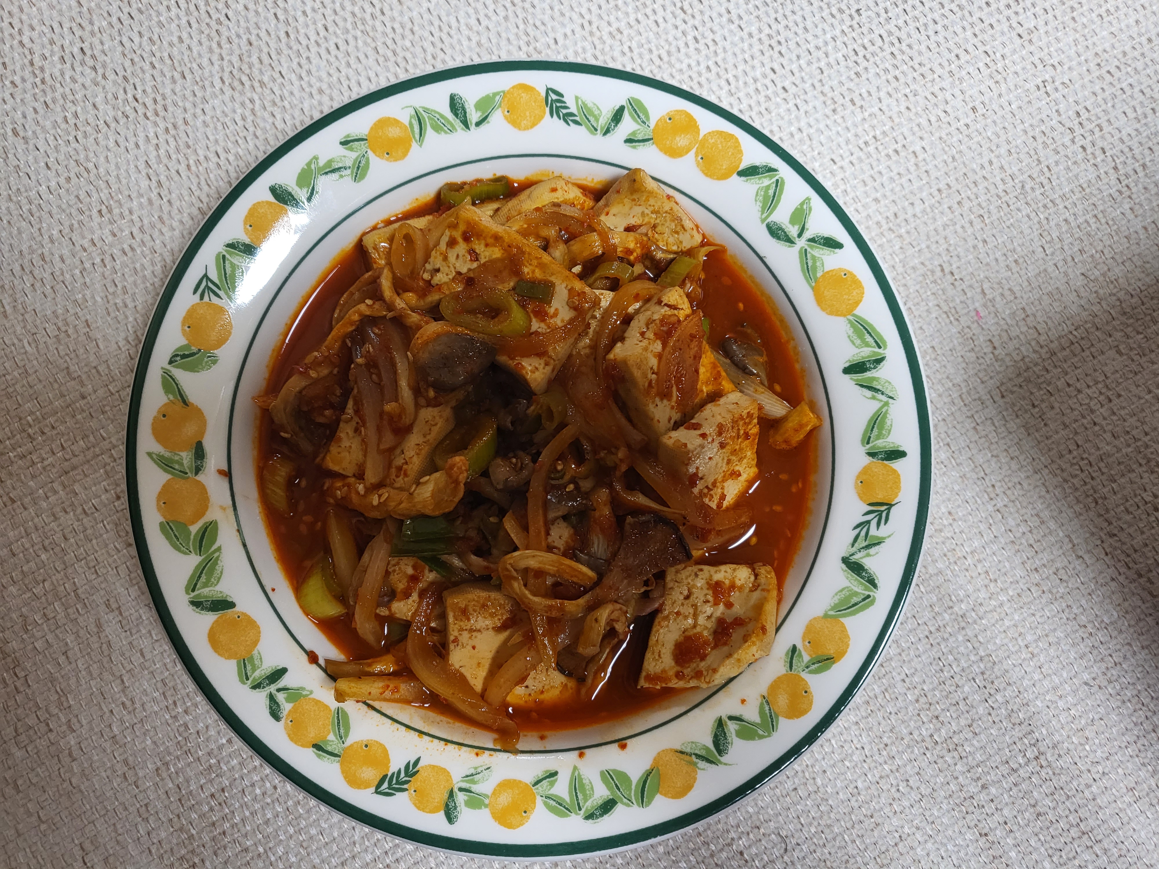 남편표 두부조림^^ 나름 비법으로 연두와 매실을 넣었다고 해요~~ 레시피; 들기름에 두부 바삭하게 굽기 - 채썬양파와 버섯 올리기- 양념장(진간장2, 고춧가루1,맛술 조금,다진마늘1T, 설탕2/1, 연두1T, 매실 조금) 과 물 3/2컵 넣고 보글보글 끓이기 너무 맛났답니다^^ 아이도 잘먹었어요 ♡