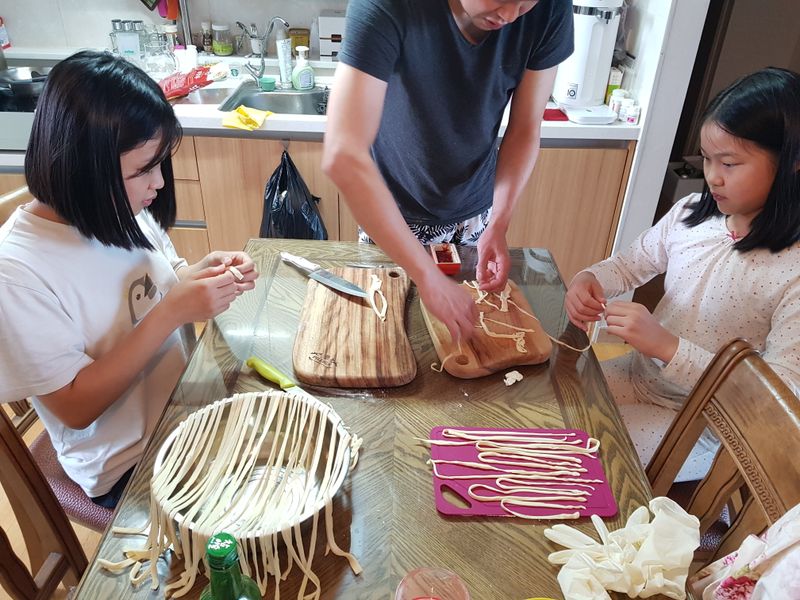 #요리해요 요리 좋아하는 남편은 주말만큼은 아이들과 즐거운 시간을 갖기위해 여러가지 일을 벌이곤 하죠. 만두빚기랑 칼국수가 젤 잘하는 요리이기도해요.아이들과 잼나게 만들어 보았어요. 칼국수랑 만두가 아이들과 함께 만들기 편하고 쉽기도해서 자주 해먹는편인데요. 아이들도 자기가 만들어서 더 좋아하고 잘먹기도하고 아빠의 관계가 더 돈독해져서 음식만드는것을 즐긴답니다. 역시 함께 만든 요리가 최고지요. #요리해요 #함께요리만들어요 #가족