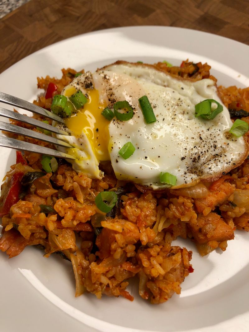 남은 김치 넣고 볶아서 만들었어요