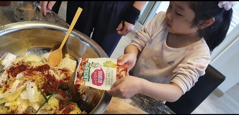 새미네 부엌과 함께라면 우리 딸도 김치를 담글수 있답니다♡ 조물조물 잘 무치는 우리집 똑쟁이