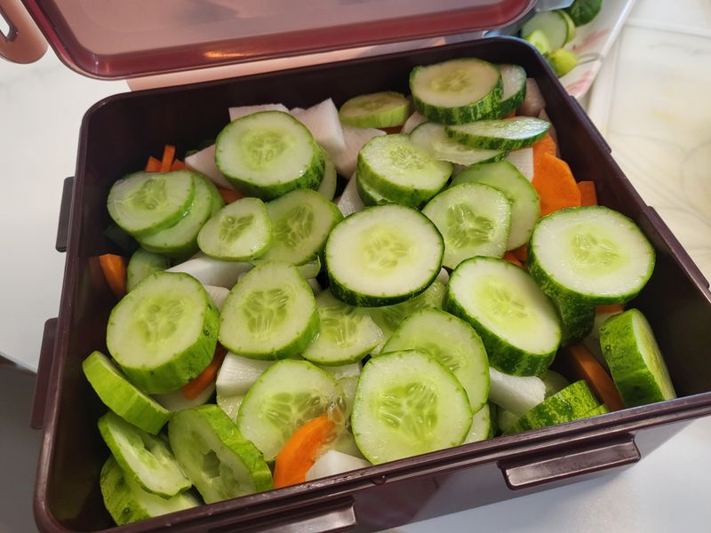 아이들이 도와줘서 오이 당근 무 썰어줬구요^^