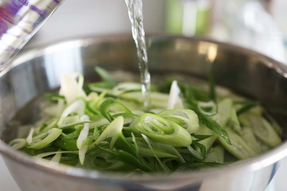 여기에 썰어놓은 대파와 물을 부어주면 완성!!