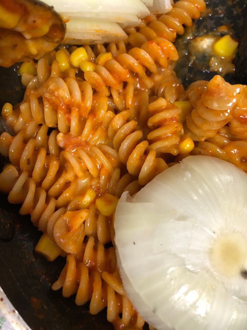 그 와중에 소스는 포기 못하겠어서 폰타나 소스랑 옥수수넣고 파스타 만들었어요