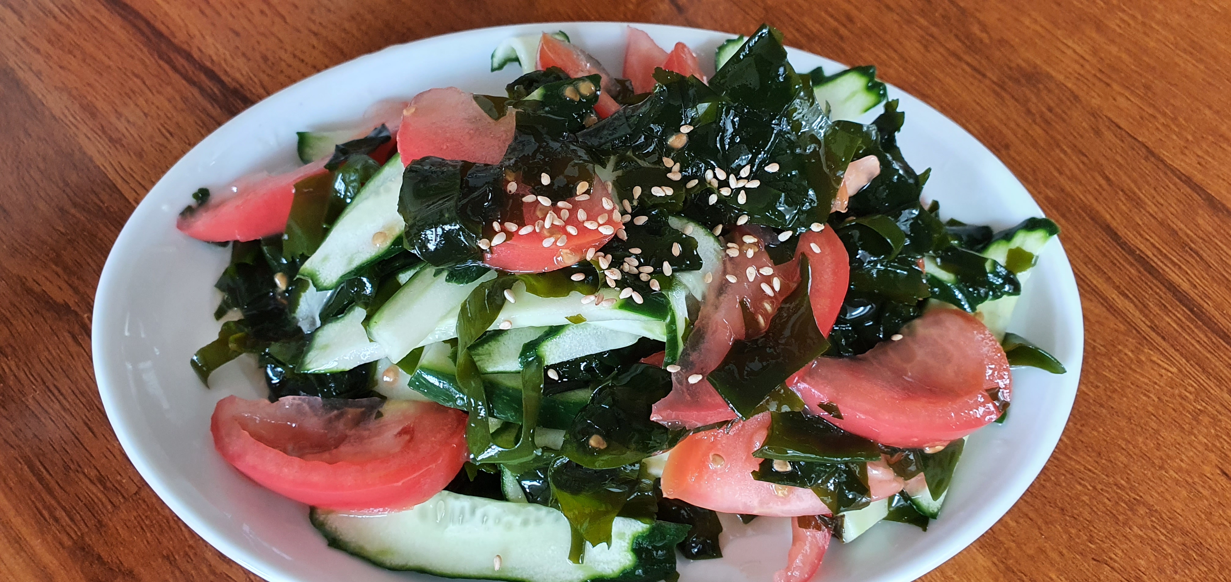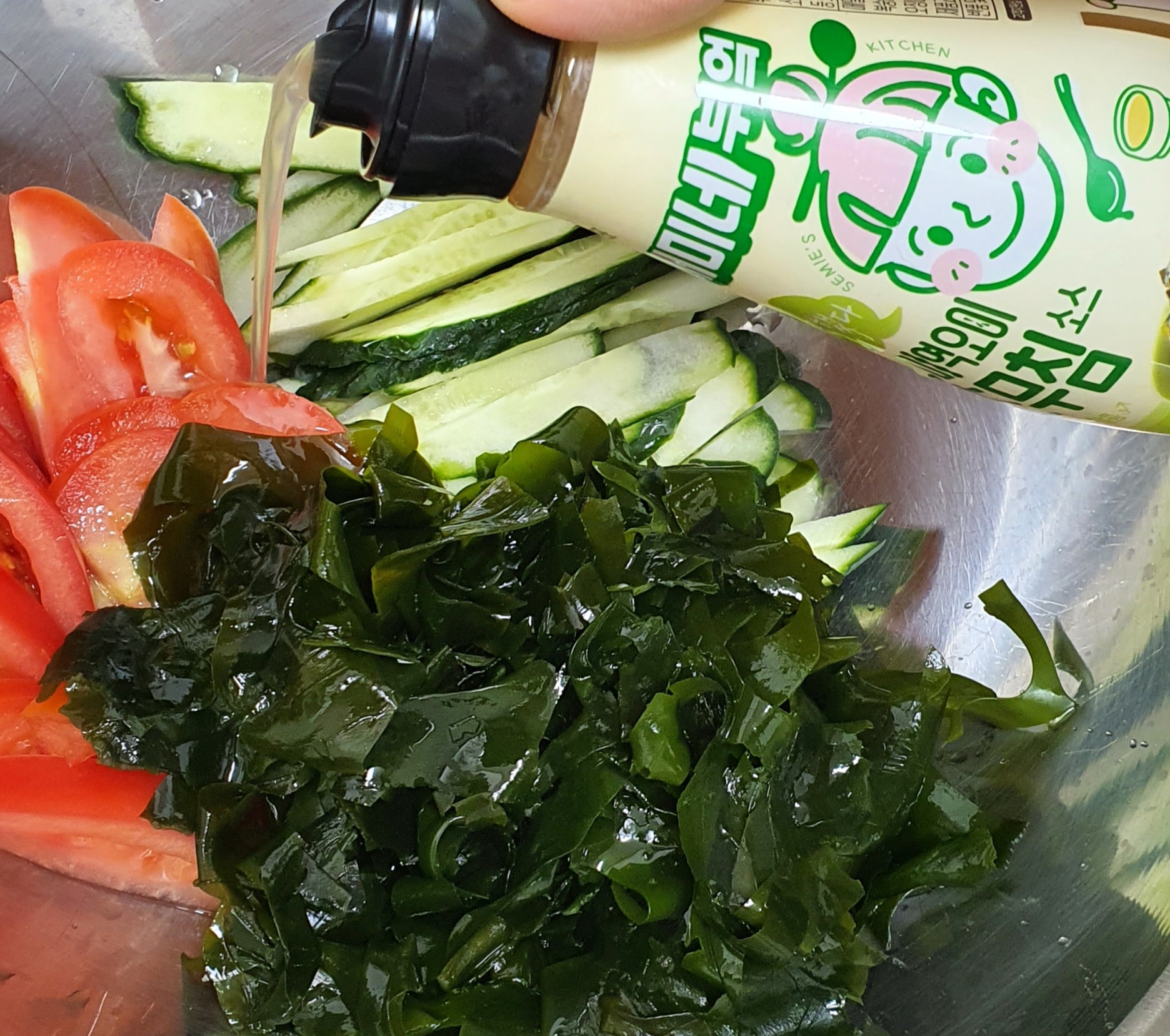 오늘은 미역오이초무침소스로 미역오이토마토냉채를 만들었어요♡
