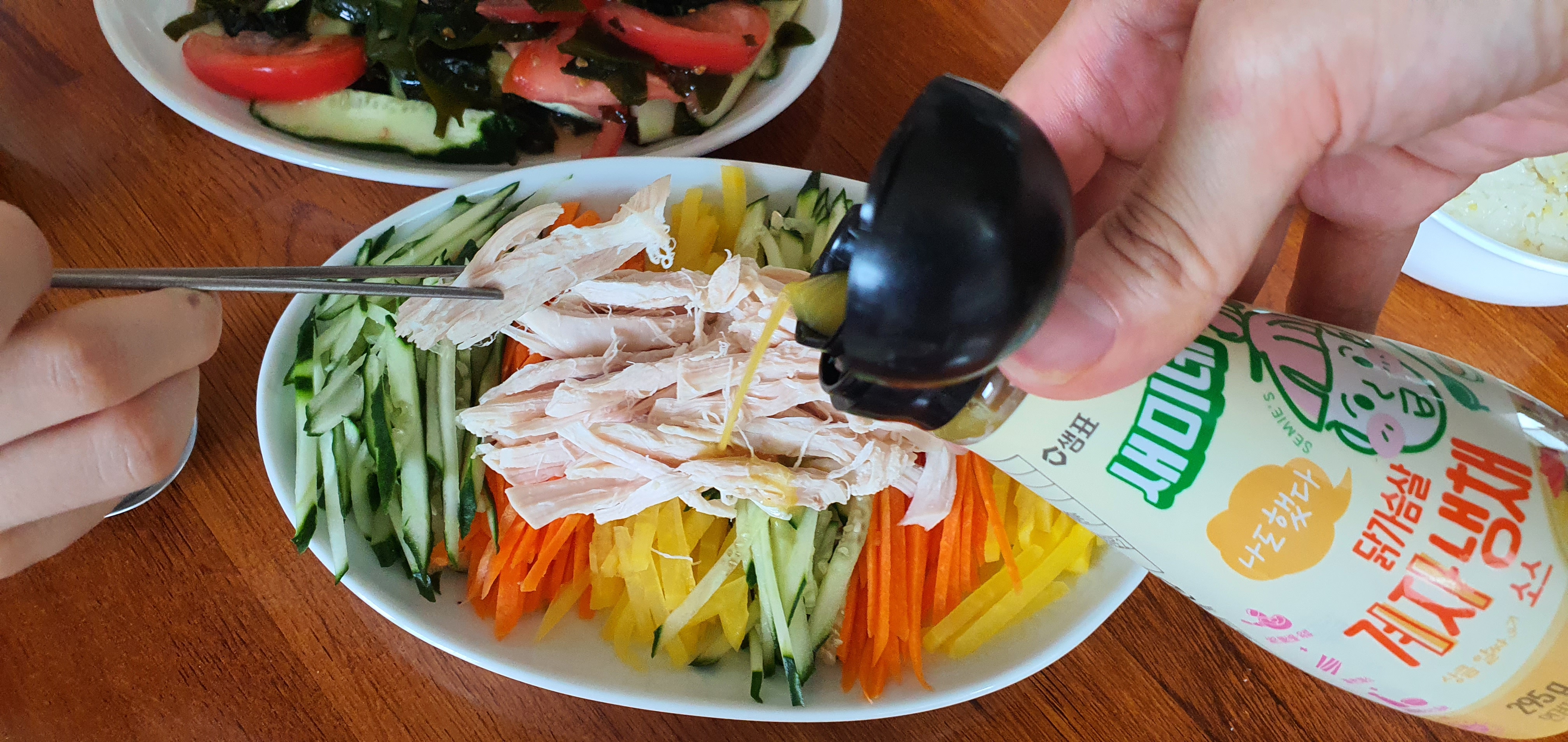 새콤달콤 알싸한 닭가슴살 겨자냉채~!! 새미네부엌 소스로 편하게 만들었어요♡ 겨자소스가 들어간 음식을 이렇게 편하게 만들수있다니~!! 너무 좋아요^^ 아이도 잘먹네요♡