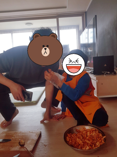 4. 그리고, 곰곰이가 가장 기다렸던 요리 과정 배추 자르기!