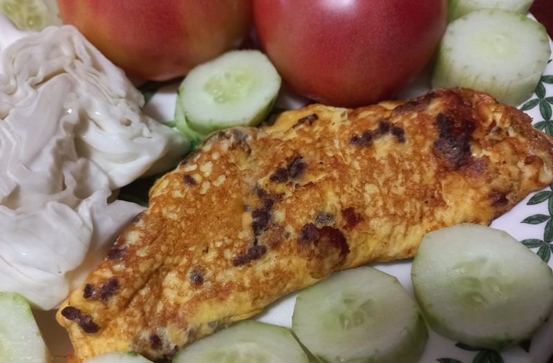 계란두개+슬라이스 치즈 3장+소고기다진거 약간+연두 한스푼!