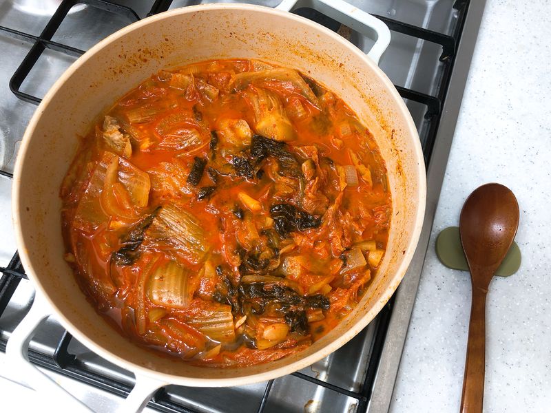 여러분 저 오늘 저녁 김치찌개 성공한거 같아요🤓 비법은 1) 들기름으로 김치 많이 볶다가 연두 육수(연구원님이 고민해요에 알려준 비법) 로 국물 맛 내니까 완전 존맛탱👏 2) 잘 익은 열무김치도 넣었어요(까맣게 보이는게 열무임 ㅎ) 하하 :D 요리도 하다보니 느는 거 같습니다 오늘 밥 두공기 자신 있습니다 하하하